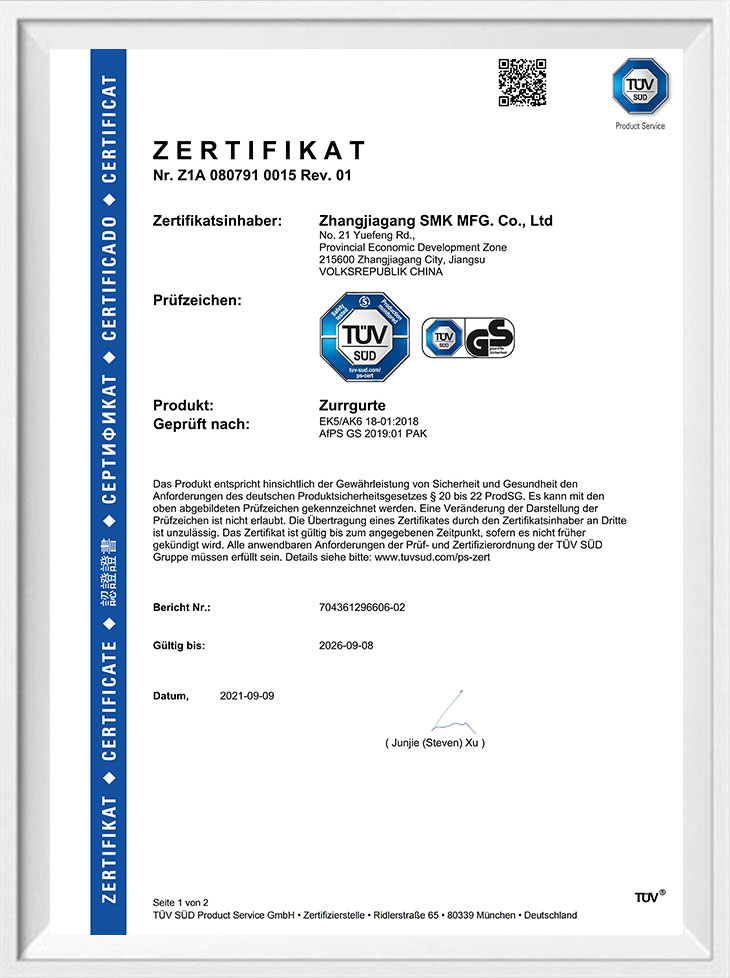 Deimhniú TUV GS Ceangail Síos agus Corda Bungee