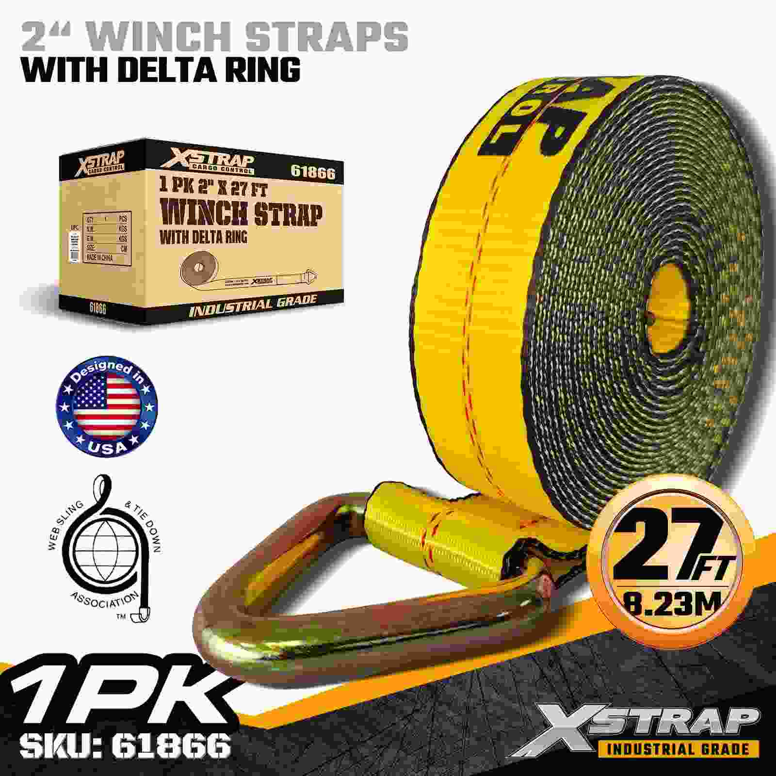Is strap urraithe lasta durable agus iontaofa é an Strap Winch Caighdeánach Xstrap 61866 2" × 27 troigh atá deartha le haghaidh leantóirí flatbed agus iompar gairmiúil. Ina bhfuil Fáinne Delta láidir agus uigí poileistear ard-neart, seachadann an strap winch 2 orlach seo Teorainn Luchtaithe Oibre 3,333 lbs agus 10,000 lbs. innealra, agus lasta ginearálta le linn oibríochtaí tarlaithe laethúil.