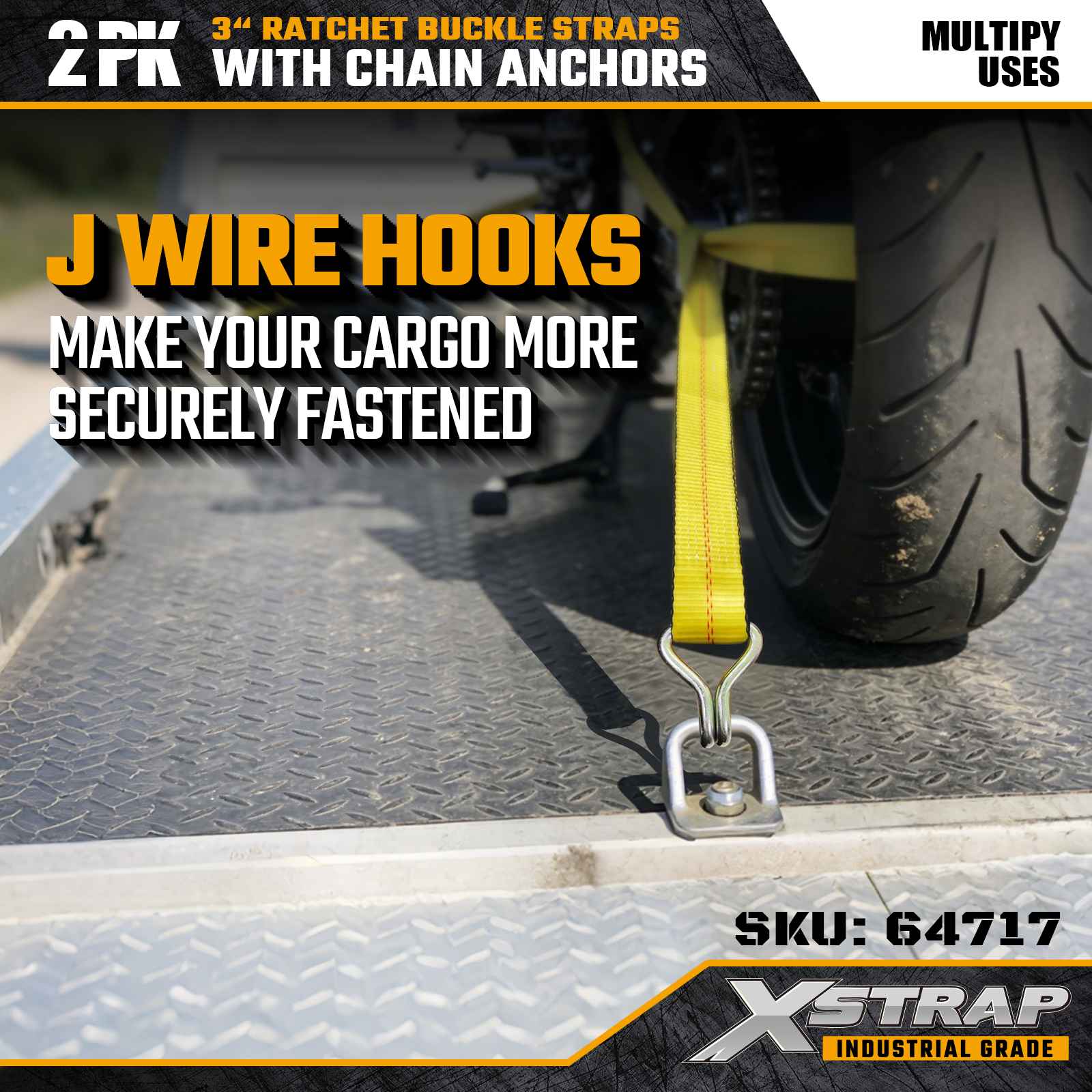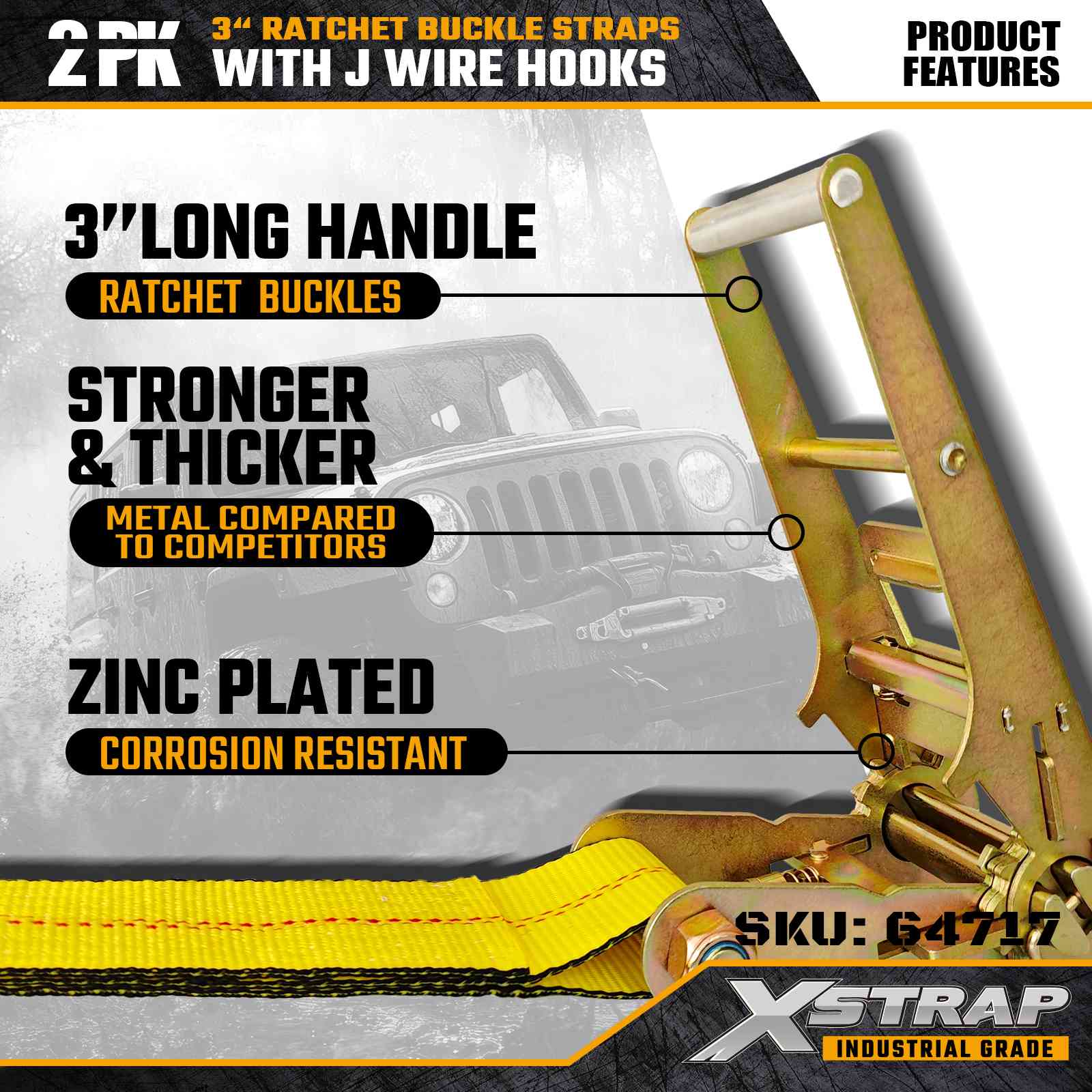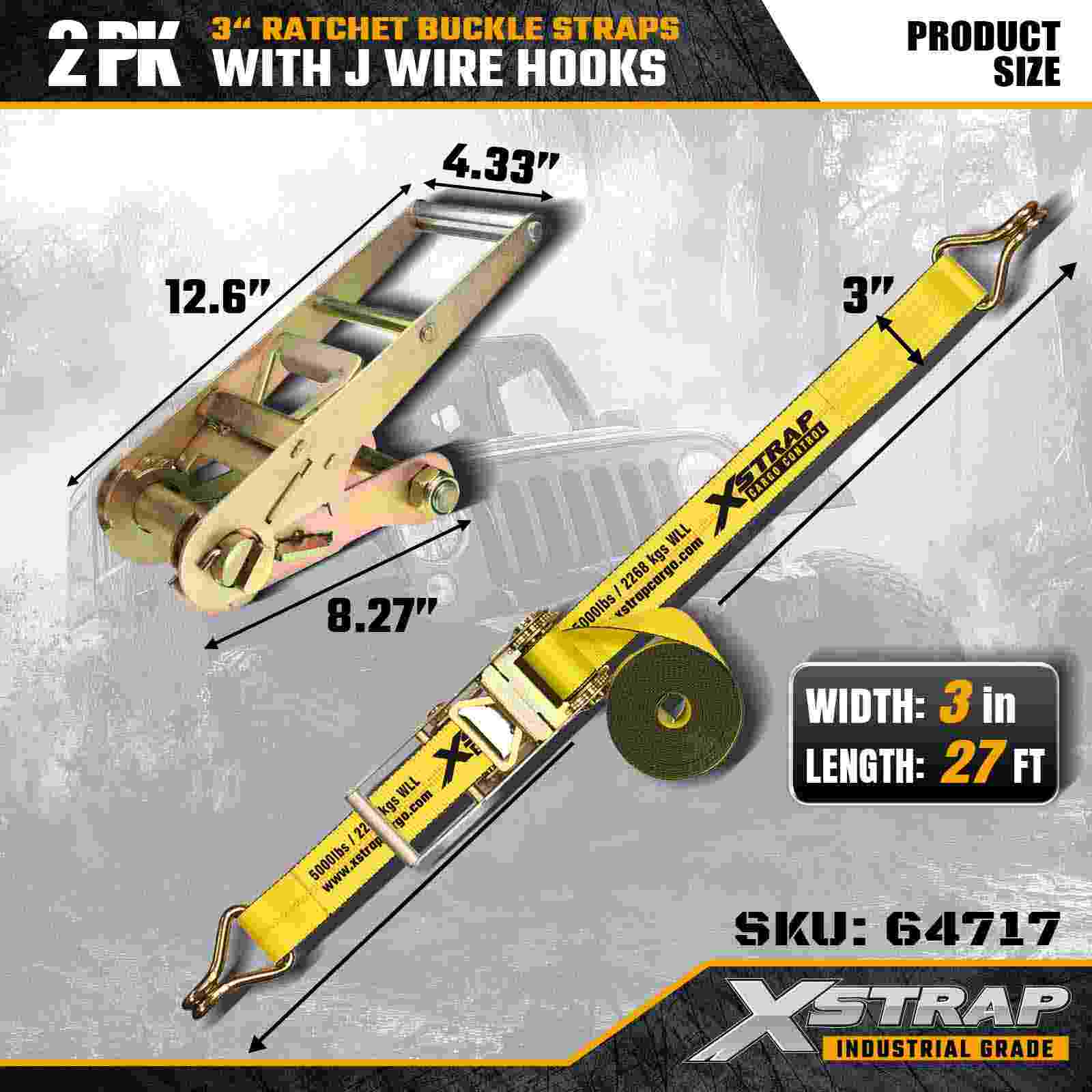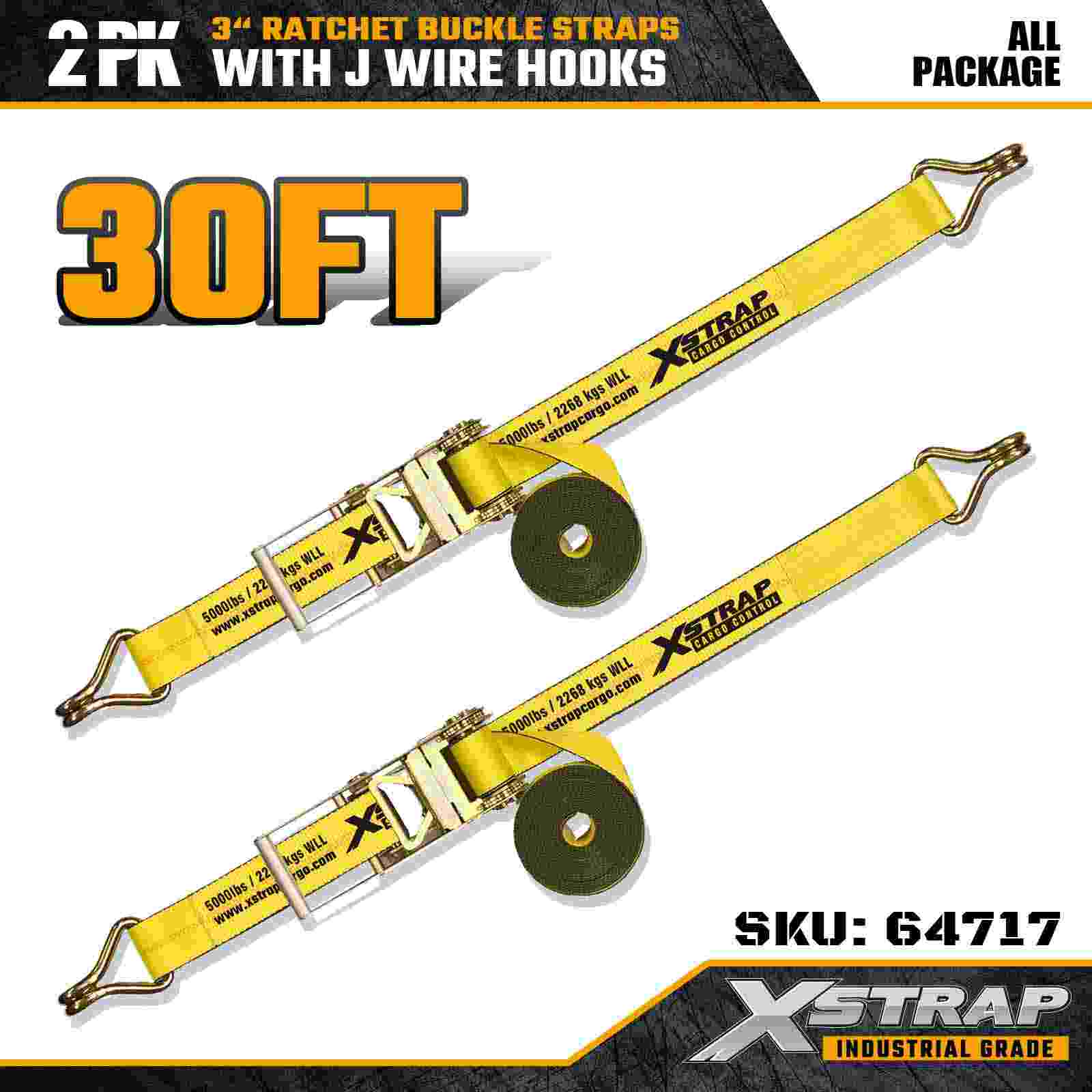 Déantar Xstrap 64717 3" × 30 troigh ar strapaí búcla (2-phacáiste) a innealtóireacht le haghaidh urrús gairmiúil lasta, ina bhfuil Hooks Sreang athneartaithe agus meicníocht raicéid thromshaothair. Le Teorainn Ualach Oibre 5,000 lb agus 15,000 lb Neart, seachadann na strapaí seo le haghaidh oibríochtaí iompair iontaofa, leabaithe briste agus tarlaithe d'oibríochtaí tionsclaíocha iontaofa, leabaithe briste.