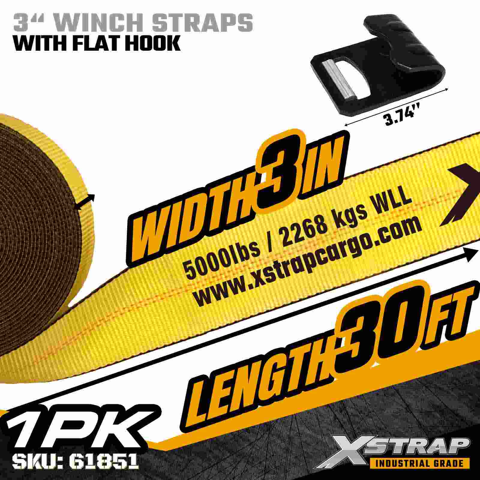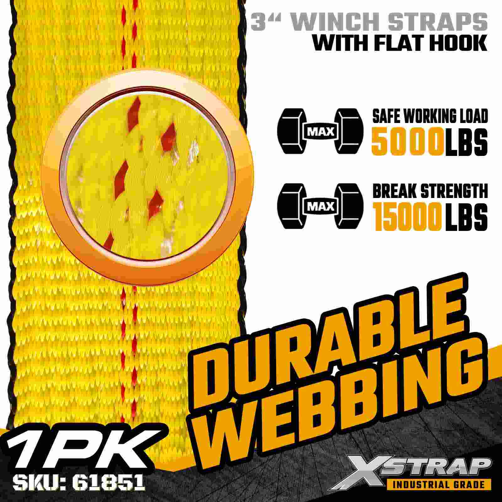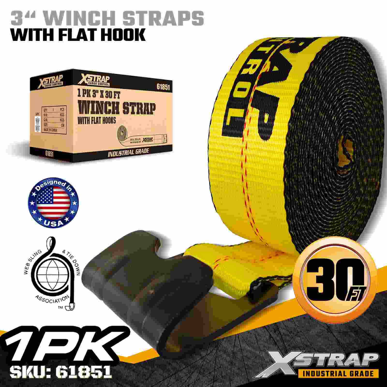Is strap daingnithe lasta tromshaothair é an Xstrap 61851 61851 3" × 30 troigh Standard Winch Strap a innealtóireacht le haghaidh leantóirí leabaithe agus iompar ard-acmhainne. Ina bhfuil Hook Maol athneartaithe agus uigí poileistear 3-orlach seach-leathan, seachadann an strap winch 3 orlach seo teorainn 5,000 lbs do Lucht Oibre, Briseadh 15 lb agus Daingnítear Teorainn Ualach Oibre 100 lb. lumber, cruach, innealra, agus lasta tionsclaíoch le linn oibríochtaí tarlaithe éilitheach.