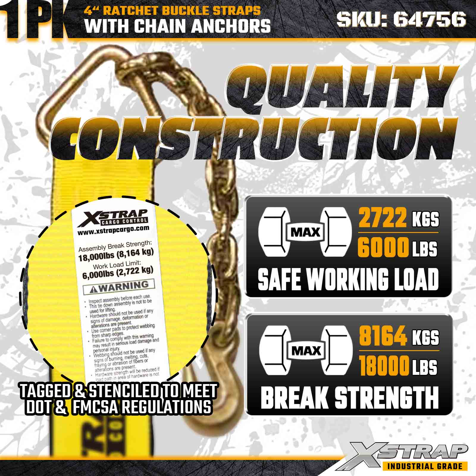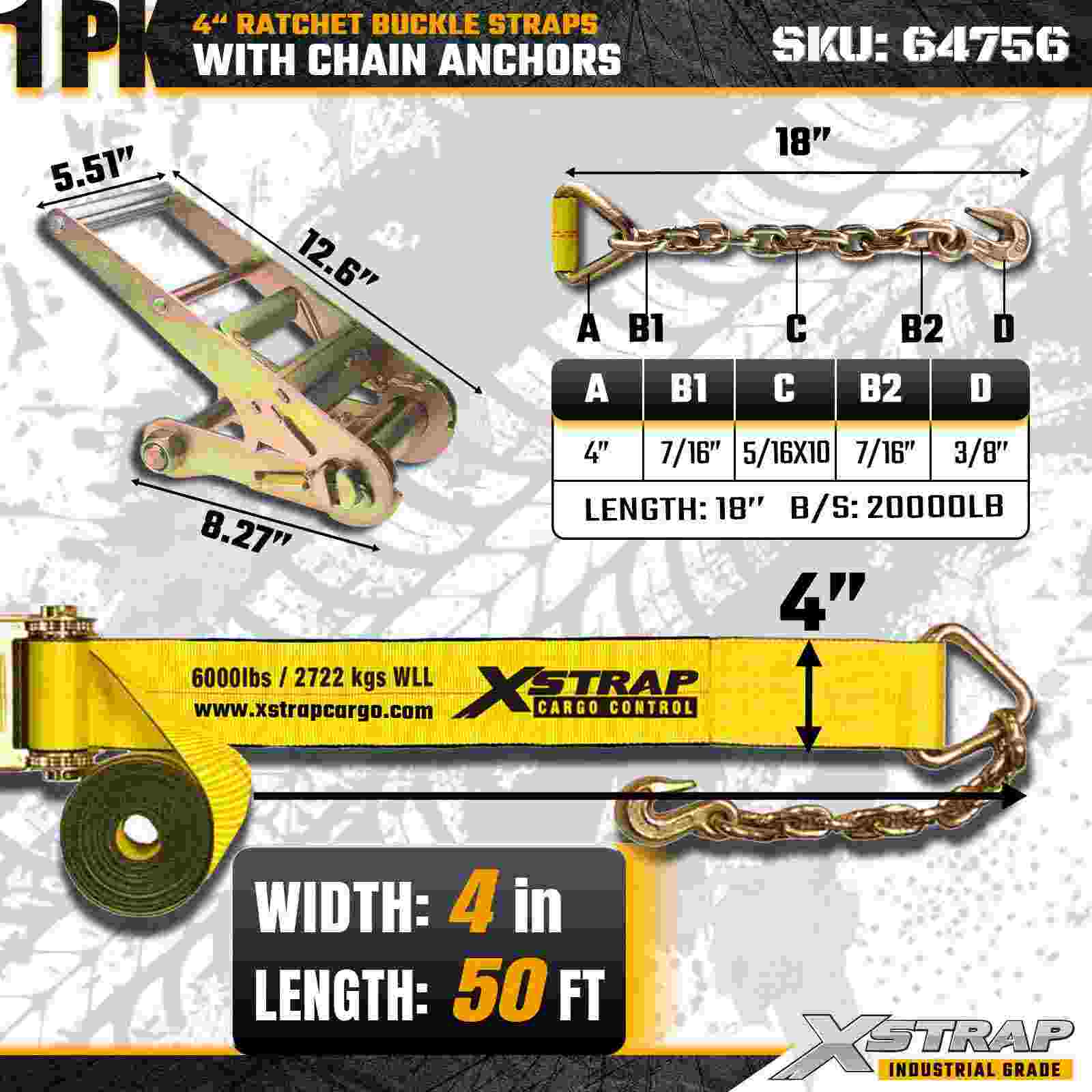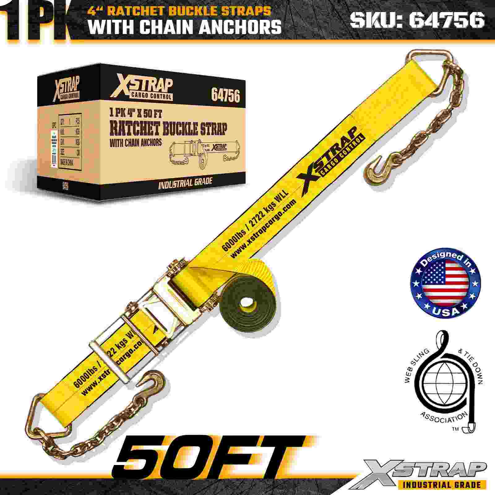 Xstrap 64756 4" × 50 troigh Ratchet Buckle Strap le Ancairí Slabhra Neart Briseadh 18,000 lb (1-Phaca)