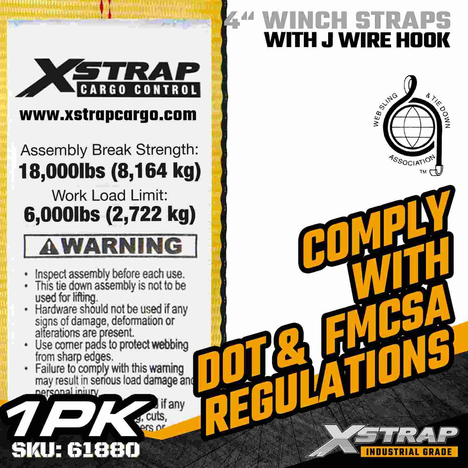 Is strap daingnithe lasta ard-acmhainne é an Xstrap 61880 4" × 30 troigh Standard Winch Strap atá deartha le haghaidh leantóirí leabaithe agus lasta tionsclaíoch rómhór. Ina bhfuil Hook Sreang athneartaithe agus uigí poileistear 4-orlach ultra-leathan, seachadann an strap winch 4 orlach seo 6,000 lb agus 1 lbs Ualaí Oibre, Briseadh 1 lb. Soláthraíonn fad sínte 30 troigh síneadh breise agus solúbthacht, rud a fhágann go bhfuil sé iontach chun ualaí leathana, ard nó neamhrialta a dhaingniú a dteastaíonn roghanna ancaireachta inoiriúnaithe uathu.