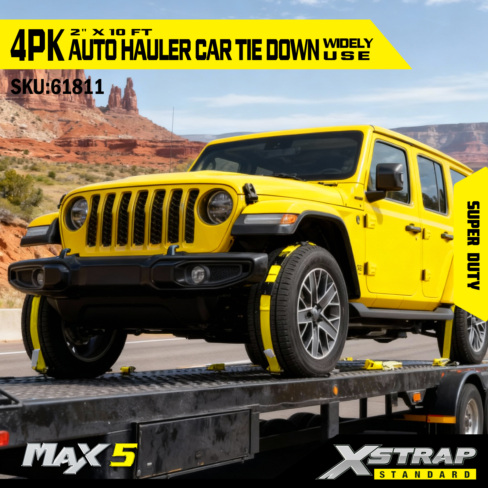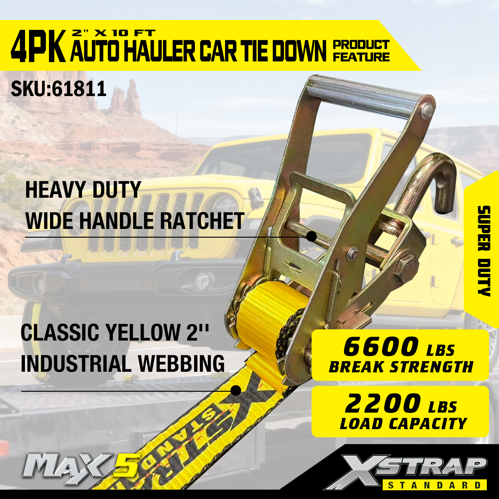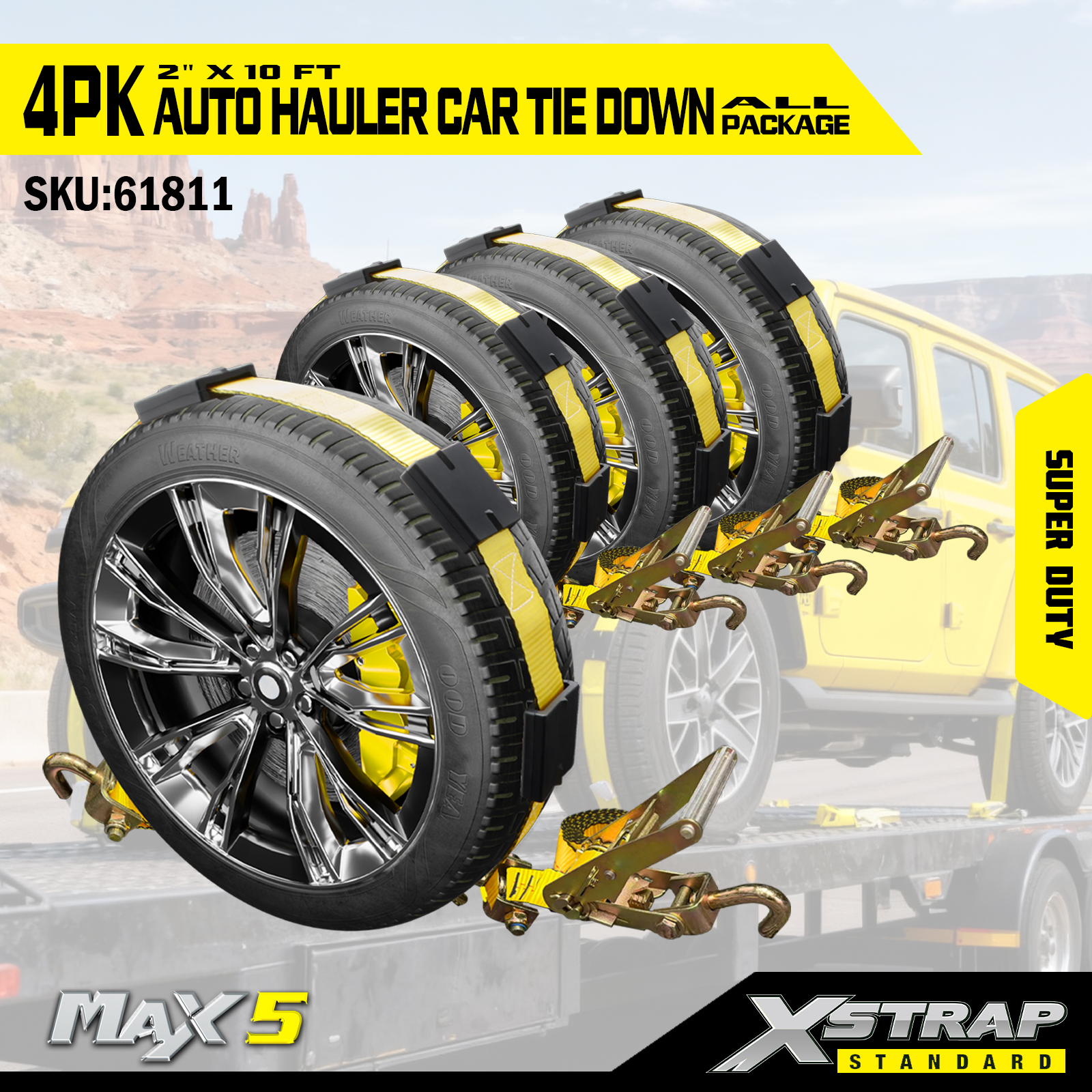 Strapaí Xstrap Car Hauler Dualgas Trom 6,600 lb Neart Briseadh - Strapaí Ceangail Boinn le haghaidh Leantóirí, Ceangail Thar an Rothaí le Cleats Rubair le haghaidh SUV, Truck, ATV, UTV