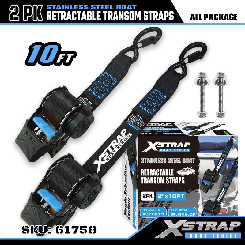 Strap trasnáin in-aistarraingthe Bád Xstrap 2PK le Dubháin S Sábháilteachta, Strap in-aistarraingthe 2” x 3.6’ poileistir Ceangail Síos Strap, Toilleadh Lasta 1000 lbs Strapaí Daingnithe le S Hook Sábháilteachta don Ghairmí Tromchúiseach chun Leantóir Lasta a Dhaingniú, Leantóir Leaba Réidh, Bád sciála, Carr Beag.