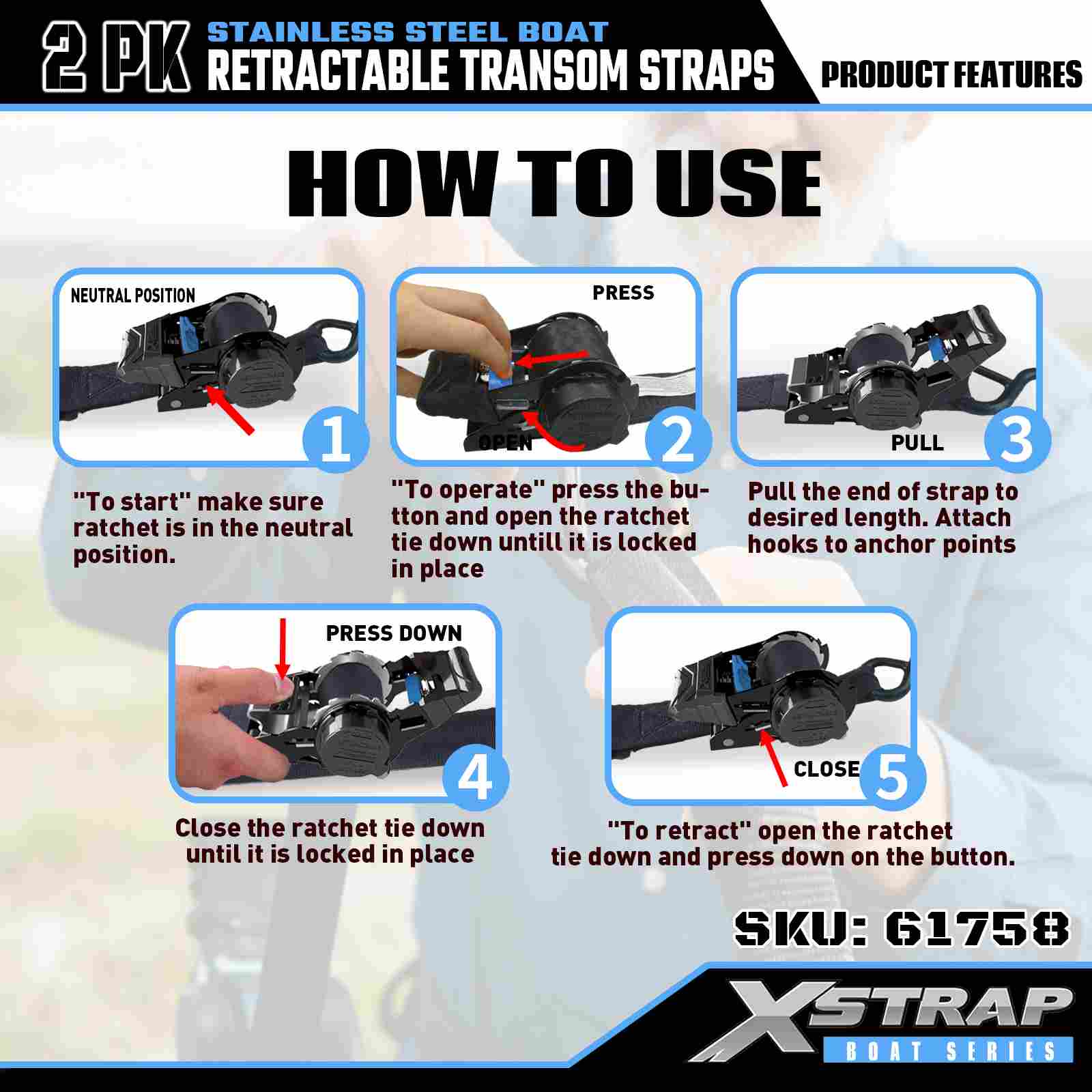 Áirítear leis an raon táirgí strapaí ceangail, cordaí bungee, strapaí barrach, slingeanna ardaithe, ardaitheoirí, agus gabhálais 4x4, a úsáidtear go forleathan in earnálacha iompair, lóistíochta, lasmuigh agus tionsclaíochta. Tá aitheantas láidir ag a bhranda intí XSTRAP i margaí domhanda, in éineacht le solúbtha Seirbhísí OEM/ODM le haghaidh riachtanas saincheaptha.