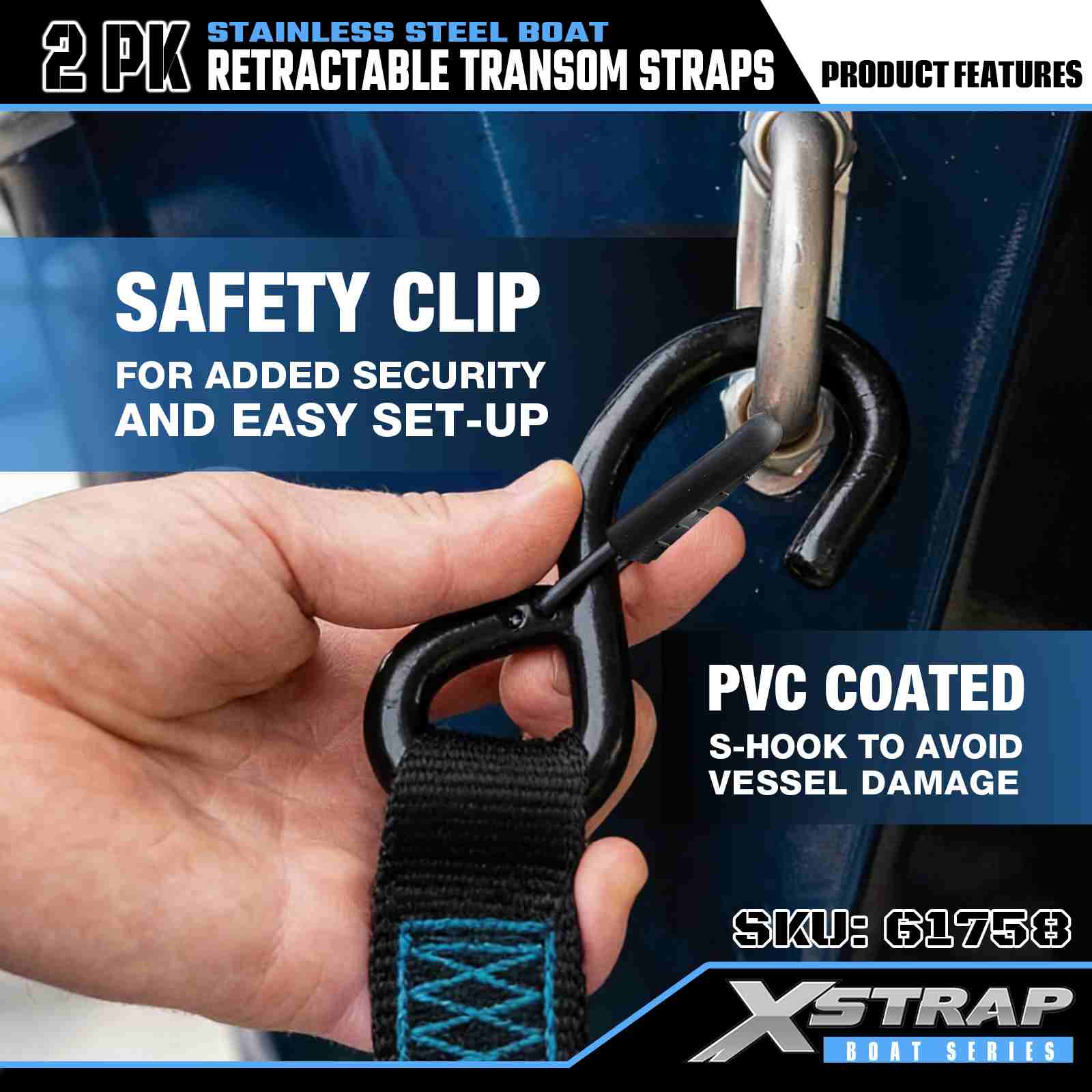 2” x 3.6’ 2PK Strap Trasnáin Bád Inghnóthaithe le Crúcaí Sábháilteachta