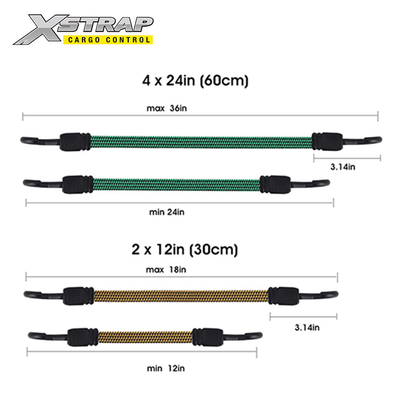- Is féidir leis na cordaí bungee cothrom sleamhnú ón lasta a chosc nuair a úsáideann tú iad. Mar sin is féidir leis an tsábháilteacht a mhéadú. Is lú an seans go mbeidh siad ag rolladh nó ag casadh agus tú ag daingniú earraí. D’fhéadfadh sé seo a bheith ina chuidiú go háirithe nuair a dhéanann tú earraí atá múnlaithe go hainnis nó nuair a bhíonn deifir ort. Agus mar gheall ar dhearadh uigí comhréidh, déantar brú a dháileadh go cothrom thar bhanda leathan. Tá na cordaí bungee cothroma oiriúnach le haghaidh lasmuigh, clúdaigh tarp, trucail láimhe, campáil, gluaisrothar, gluaisteáin, rothair, racaí bagáiste.