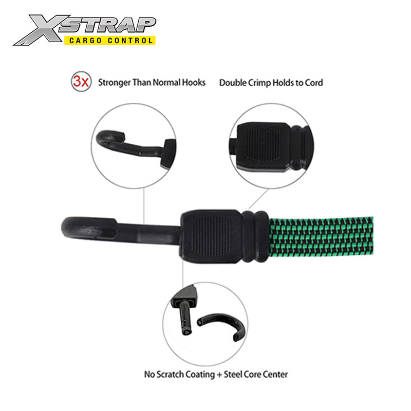 - Tá crúcaí na gcordaí bungee comhréidh 3X níos láidre ná an gnáthchrúca. Is cordaí tromshaothair iad le haghaidh bagáiste, Tarpaulin, Phuball, Bád, Rothar agus Trucailí. Soláthraíonn na cordaí bungee feidhmíocht iontaofa agus marthanach aon uair a úsáideann tú é.