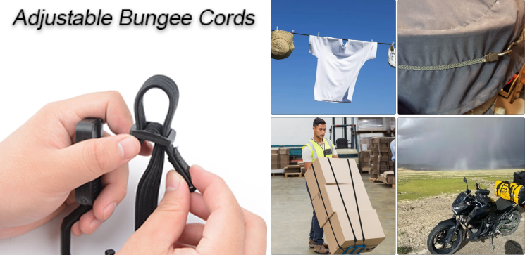 Tugann cordaí bungee inchoigeartaithe cobhsaíocht fheabhsaithe agus claonadh laghdaithe chun míreanna a thochailt. Tá siad ilúsáideach agus oiriúnach do raon leathan feidhmchlár, lena n-áirítear trealamh, stóráil a eagrú, bagáiste nó tarpaí a cheangal, fearas sábháilte lasmuigh, gairdín, garáiste nó iarratais taistil.