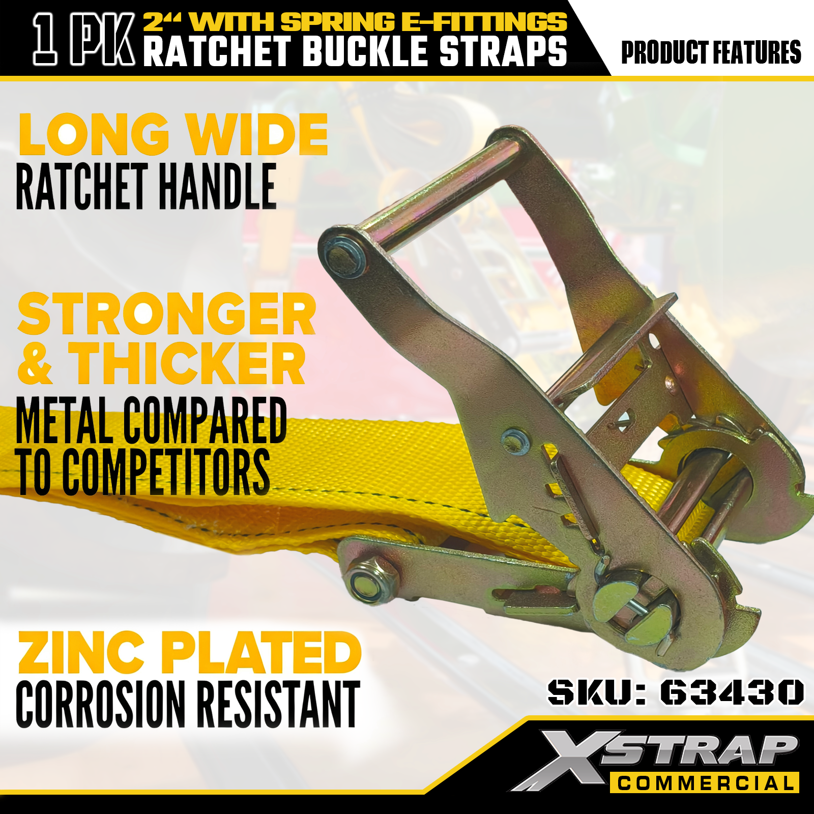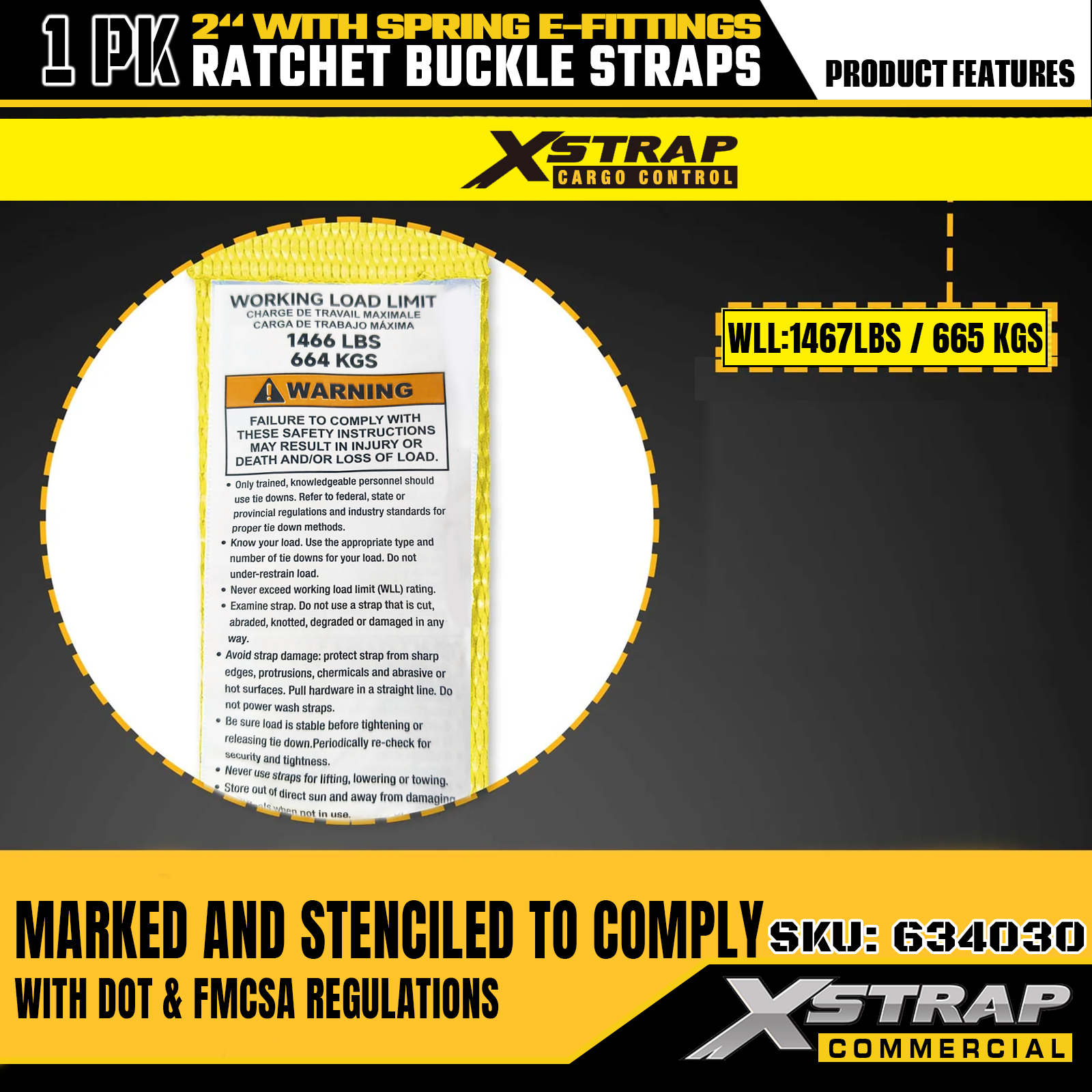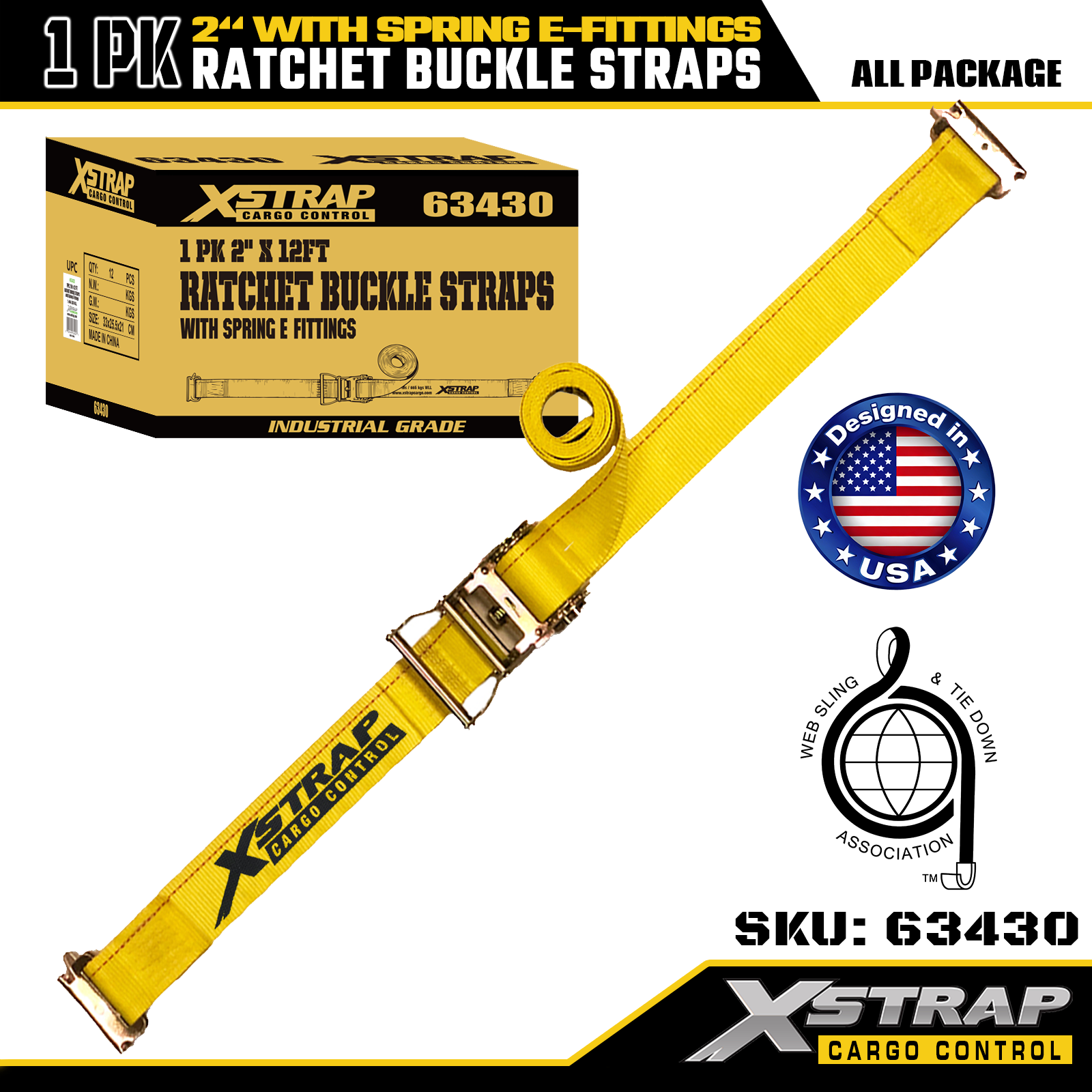 Pacáiste Xstrap 1 Strapaí Ceangail Ratchet poileistir Síos le Feistis Earraigh E, 2" x 12' strapaí Daingnithe Lasta Trom-Dleachta, 4401 lb (1467 bpunt) Cumas do Thrucail, lomaire, ATVanna