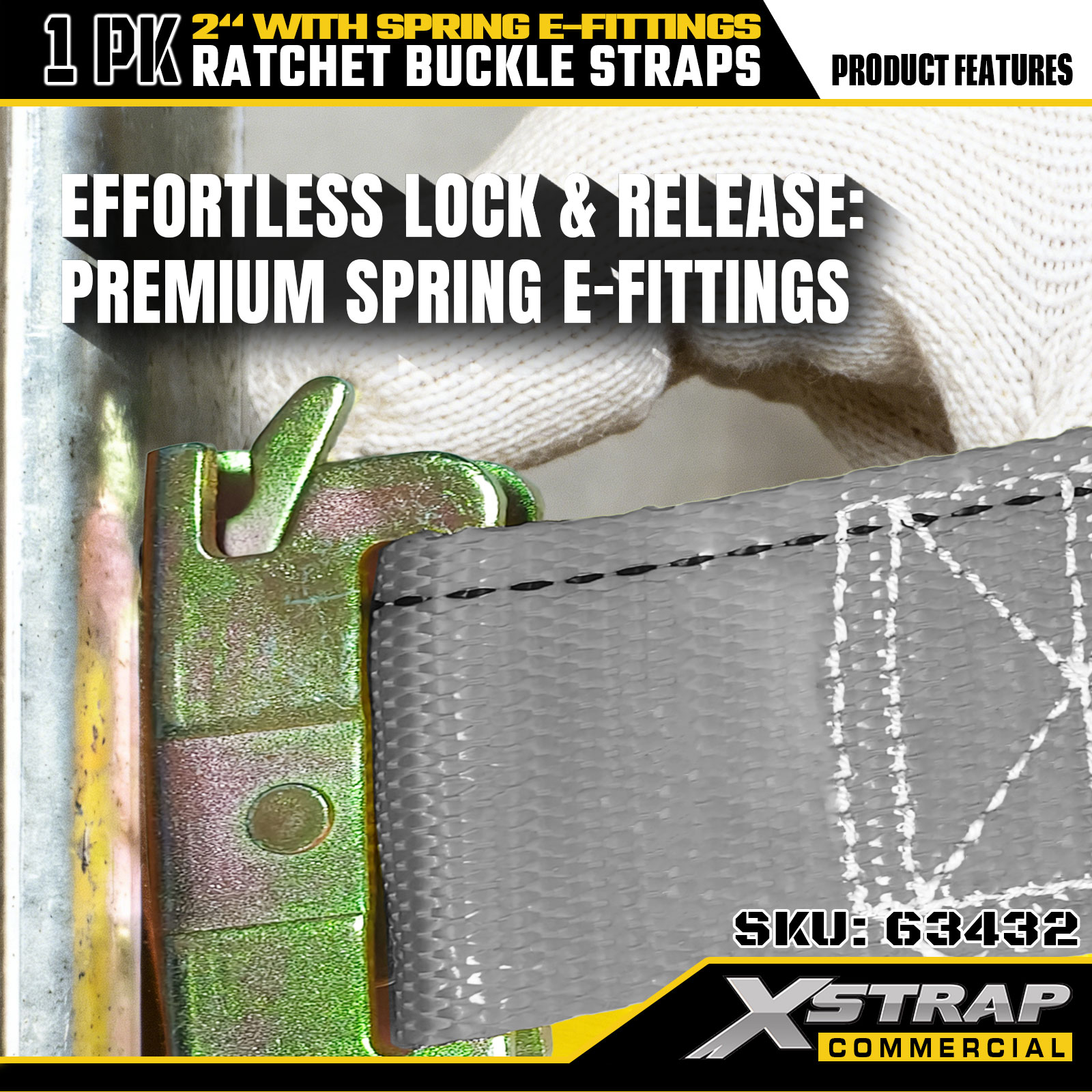 2" x 16' 1PK Strapaí Ratchet Buckle le E-Feisteas Earraigh