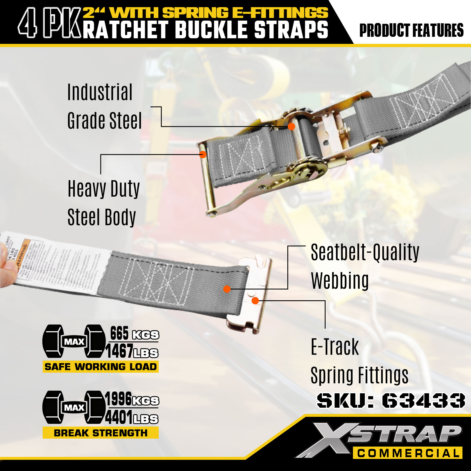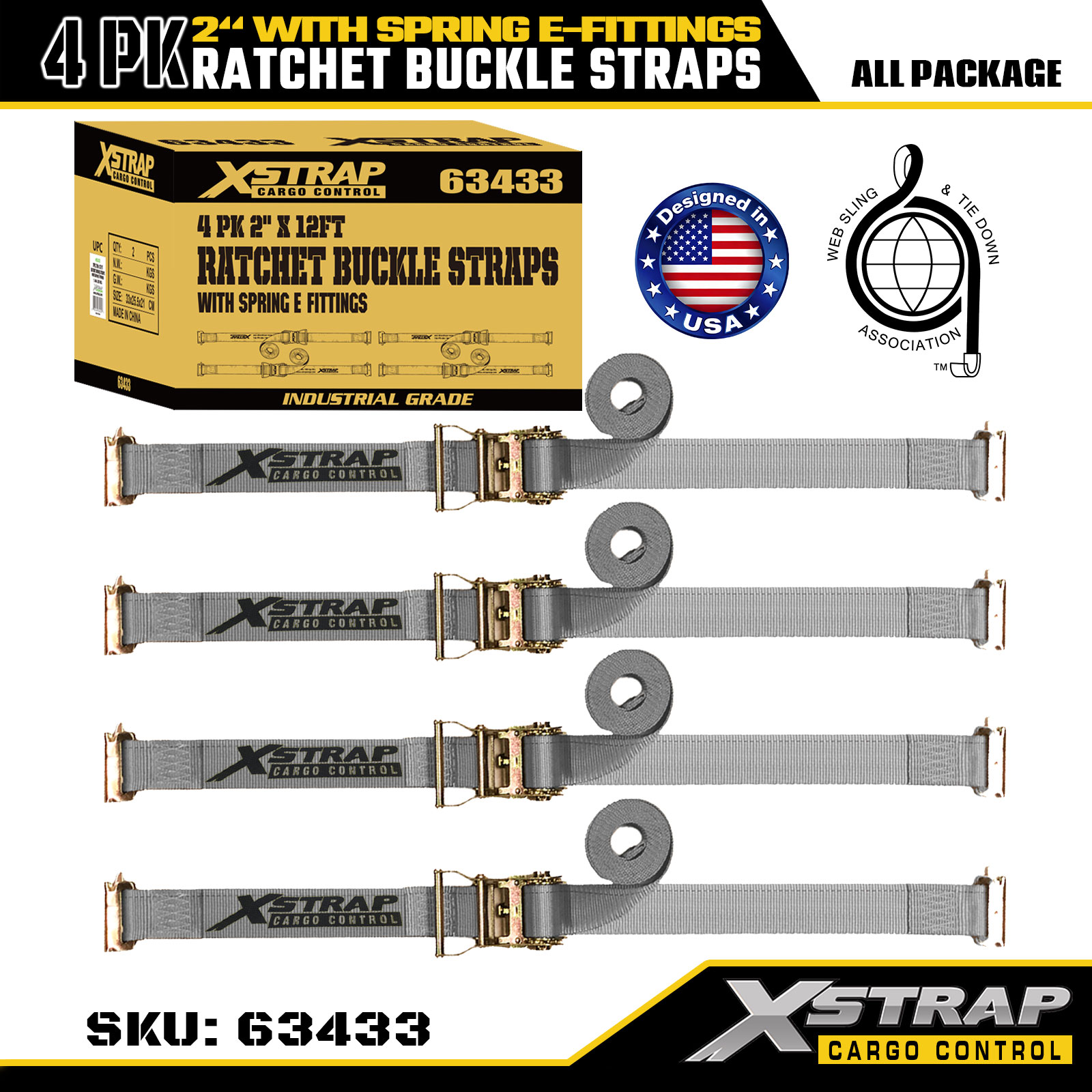 2" x 16' 4PK Strapaí Ratchet Buckle le E-Feisteas Earraigh