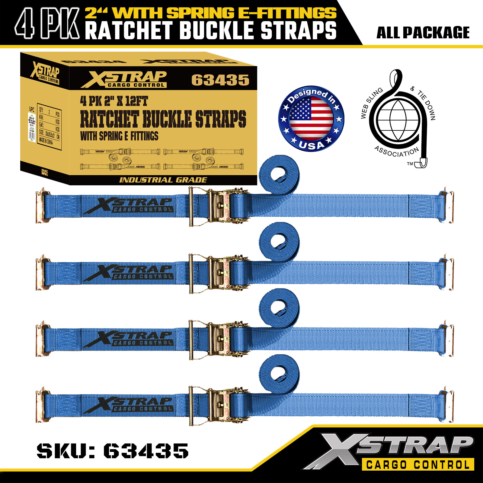 Strapaí Nasctha RatánComment Xstrap 4 Pacáiste, Strapaí Daingnithe Lasta poileistir 2" x 12' le E-Feisteas Earraigh, 1467 lbs Ualach Oibre Sábháilte (SWL) & Neart Briseadh 4401 lbs, do Thrucailí, lomairí, ATVanna