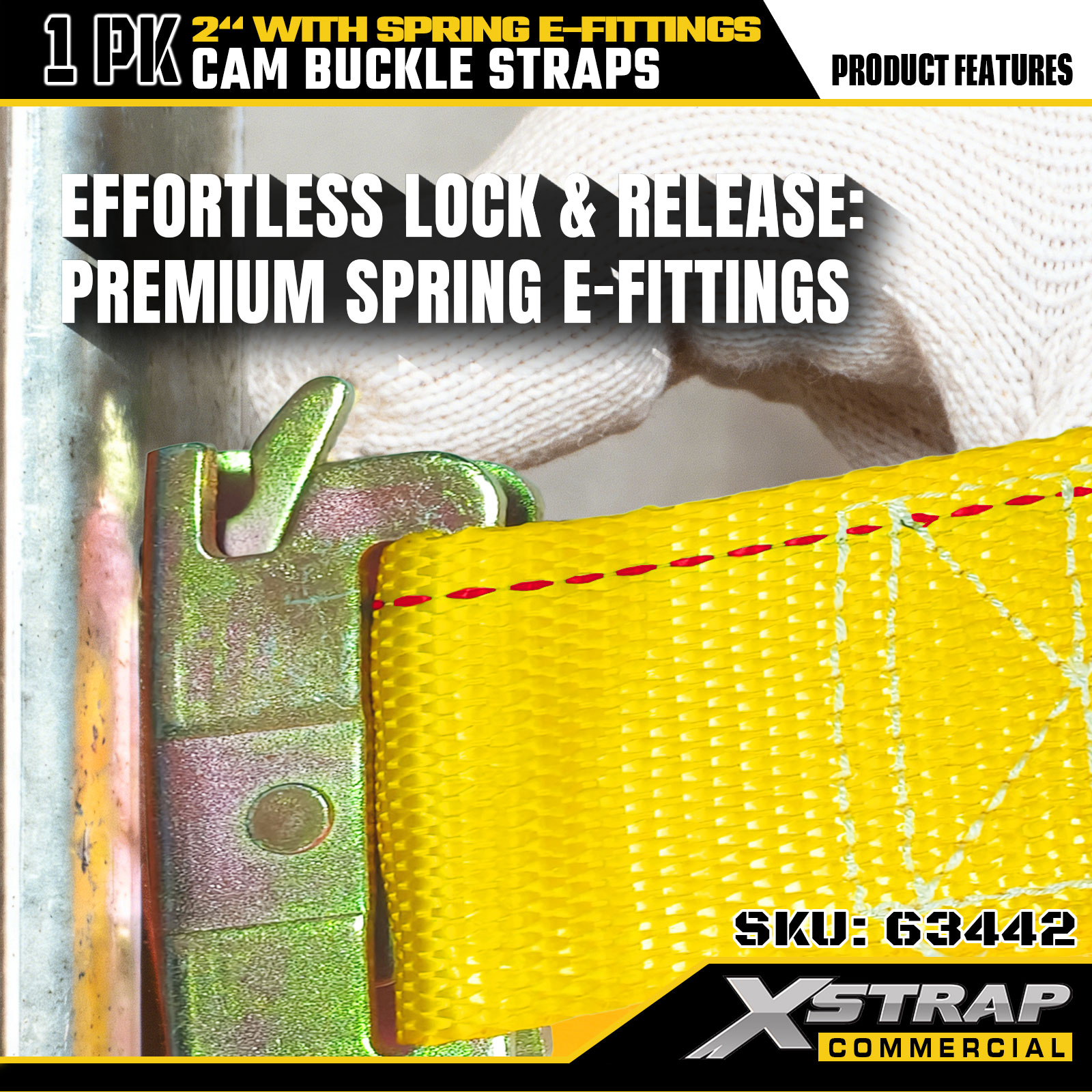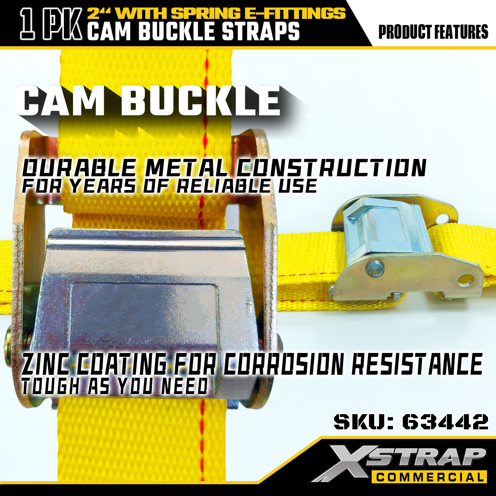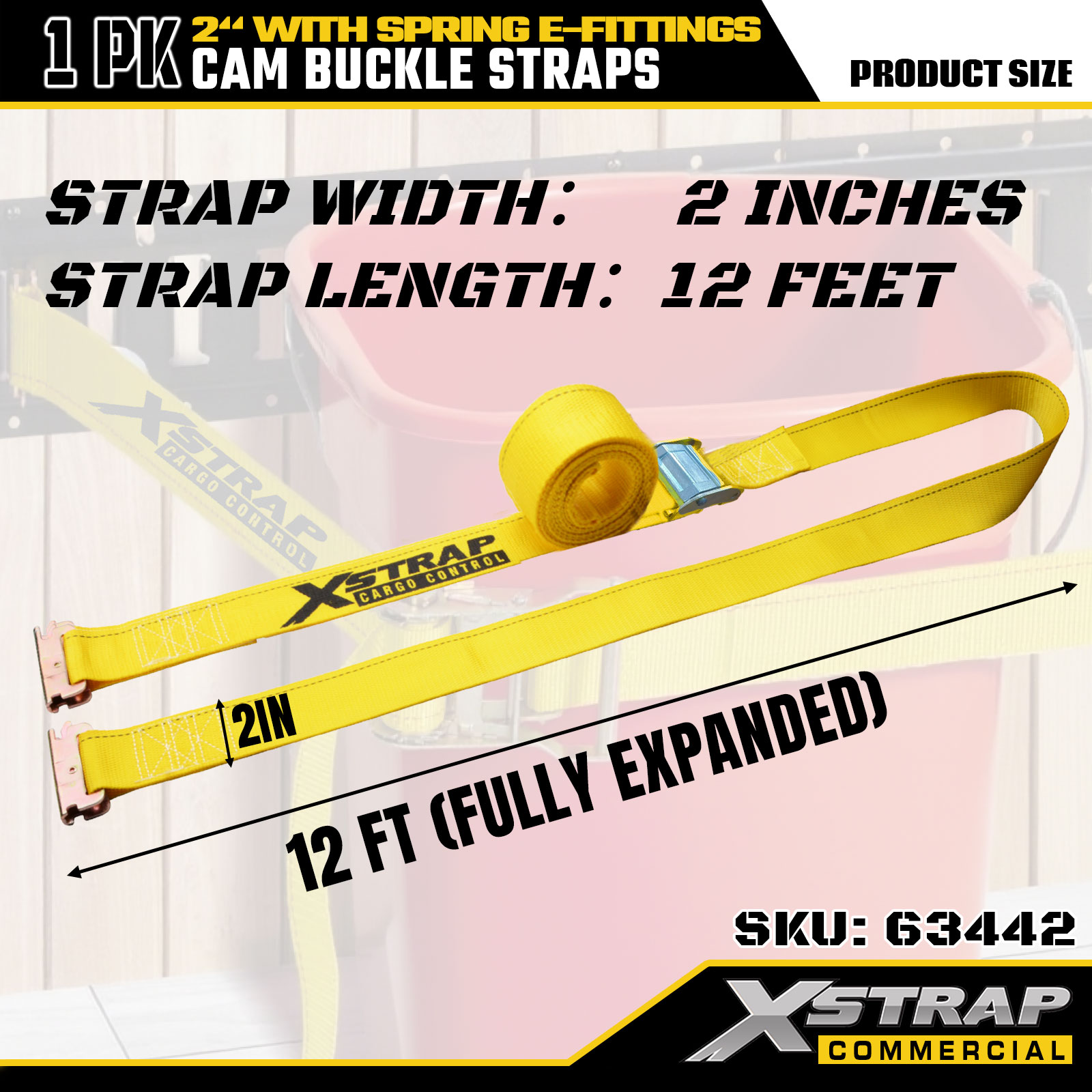 Xstrap 63442 Strap Búcla Cam Dualgas Trom 2" x 12' (1PK) - poileistir Buí le E-Feisteas Earraigh, 1000 lbs SWL & 453 lbs Neart Briseadh le haghaidh Bogadh, Rialú Lasta & Iompar