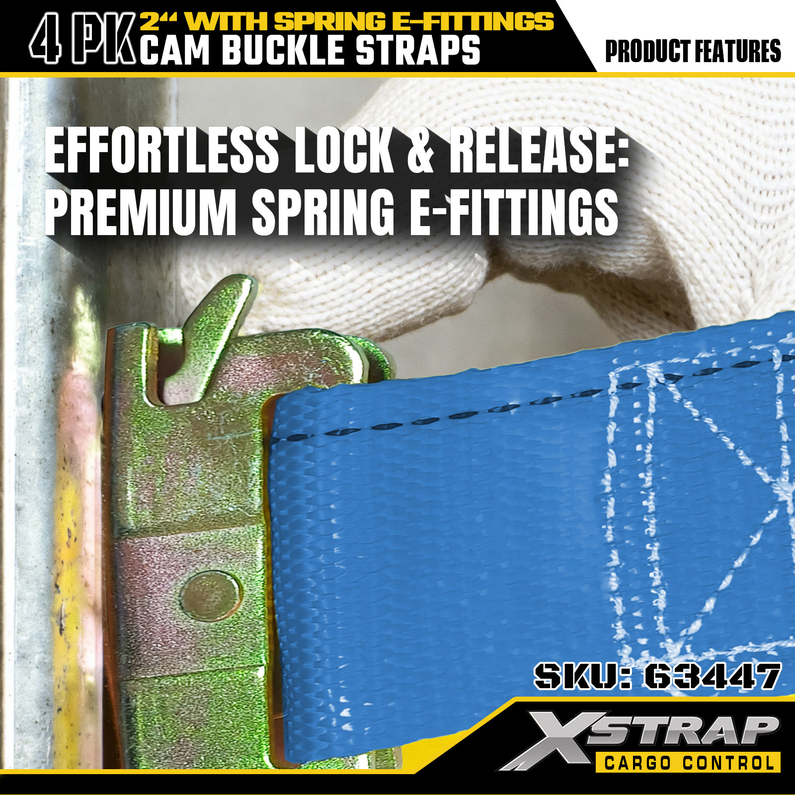 - Daingniú Lasta Inspleách - strapaí ratchet 4-phacáiste 2" x 12' le neart briste 733 lbs SWL agus 332 lbs, boscaí, troscán, fearais agus lasta ginearálta á gcoimeád go daingean le linn gluaiseachta, iompair agus stórála. Cinntíonn E-fheistis Earraigh agus crúcaí F ceangaltán cobhsaí E-Track ar thrucailí, veaineanna agus leantóirí, ag stopadh aistrithe ualaigh.