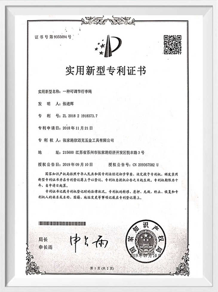 Zhangjiagang SMK MFG. Co., Teo. Tá deimhniú ISO 9001, iniúchta SMETA, agus C-TPAT comhlíontach, ag cinntiú go bhfágann ár dtáirgí an mhonarcha le ceannasaíocht an tionscail neart tosaigh agus iontaofacht .
