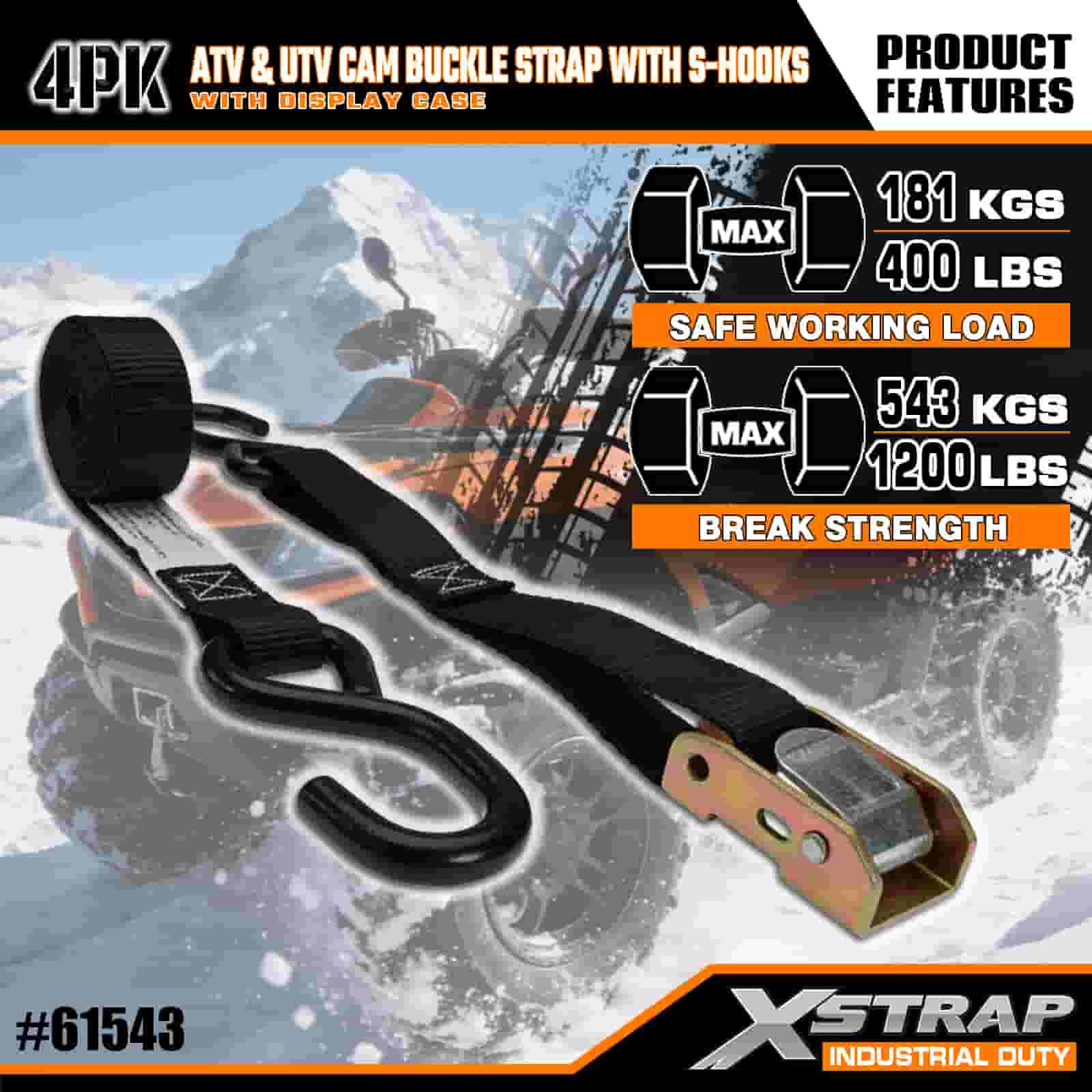 1” x 6’ 4PK Strap Cam Buckle ATV & AUV le S Hooks