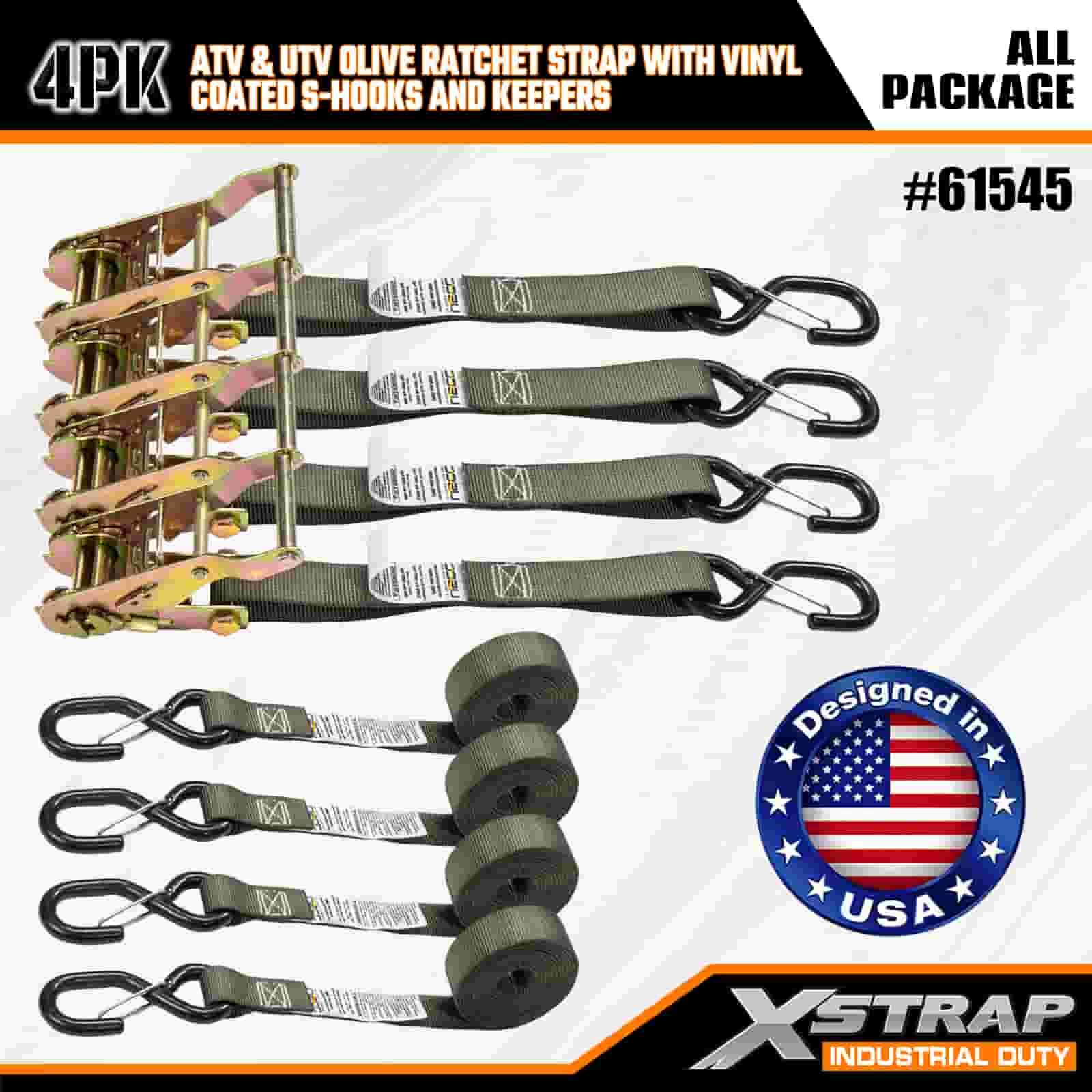 Strap Ratchet Xstrap 4PK le Hooks Sábháilteachta Brataithe Vinyl S, Strap Raitse Ceangailte Dúin poileistir 1” x 8’, Toilleadh 833 lbs Strapaí Daingnithe Lashing Lasta le S Duáin Sábháilteachta le haghaidh Leantóir Trom Dualgais, Bád Sciála Leantóir Leaba Réidh, Car Beag, Car Beag.