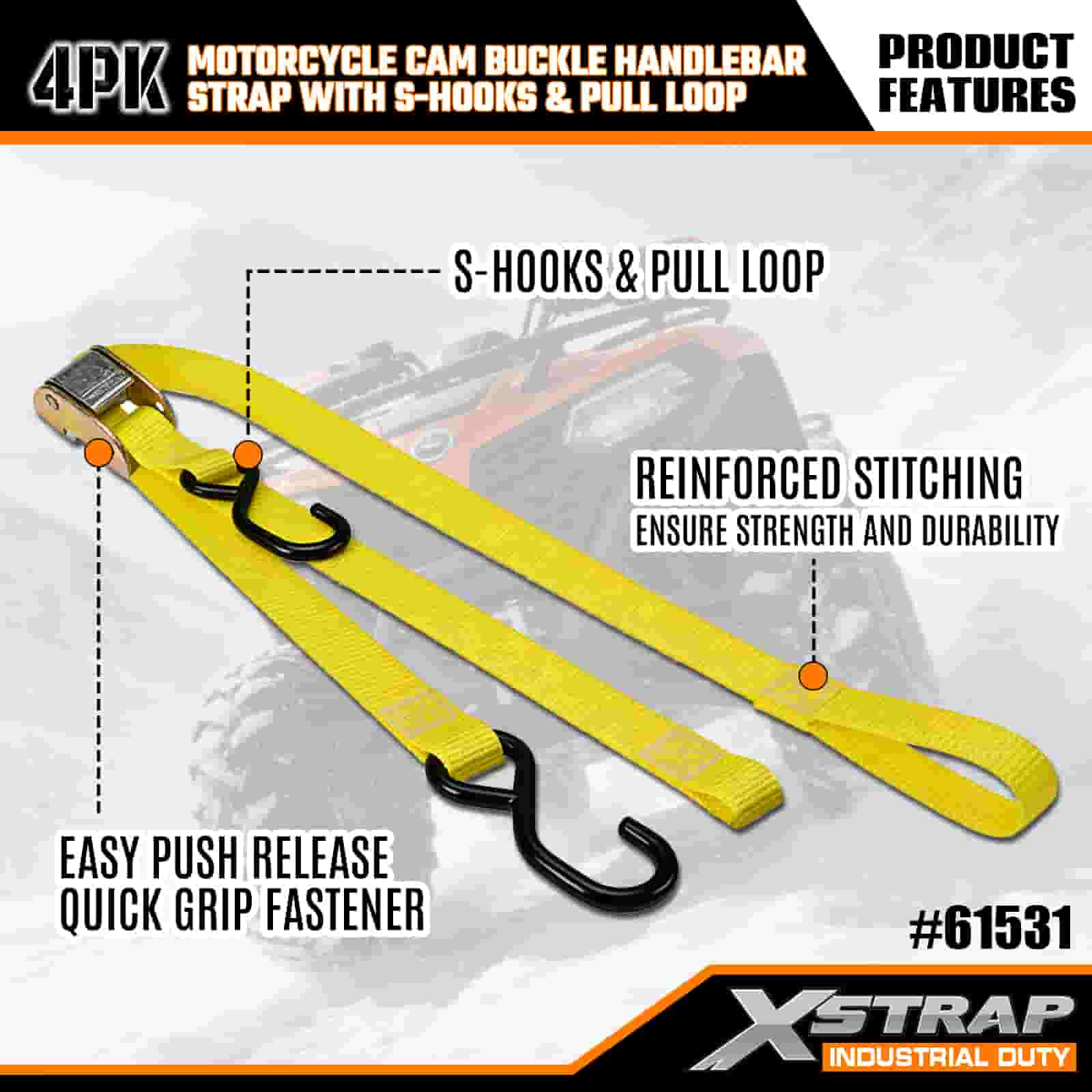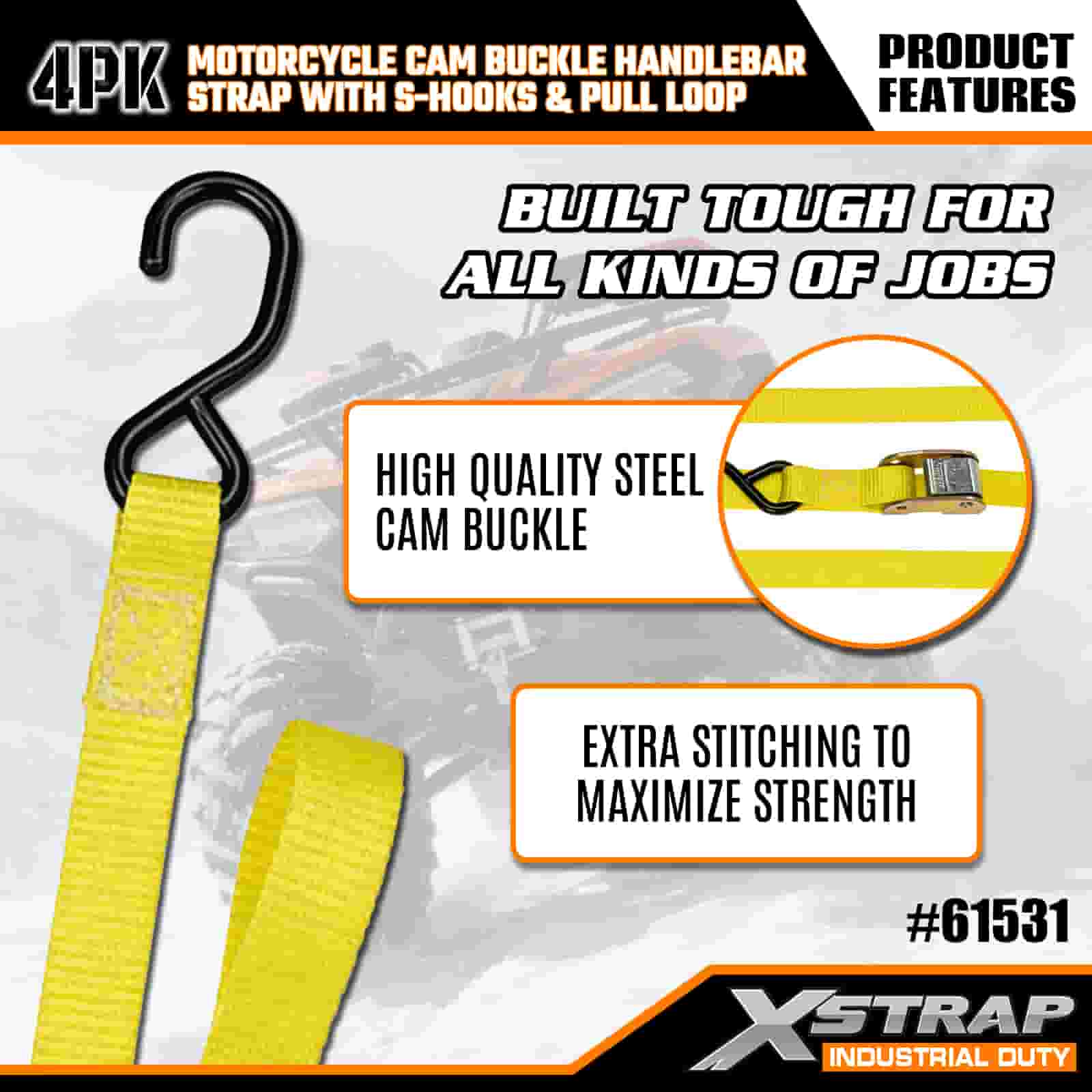 - Strapaí 4-Phacáiste 6FT le haghaidh Úsáid Gluaisrothar: Díolta mar shraith 4 strap (1 orlach ar leithead × 6 troigh ar fad), atá oiriúnach chun gluaisrothair, barraí láimhe, agus fearas beag a dhaingniú i leapacha trucail nó le linn iompair.