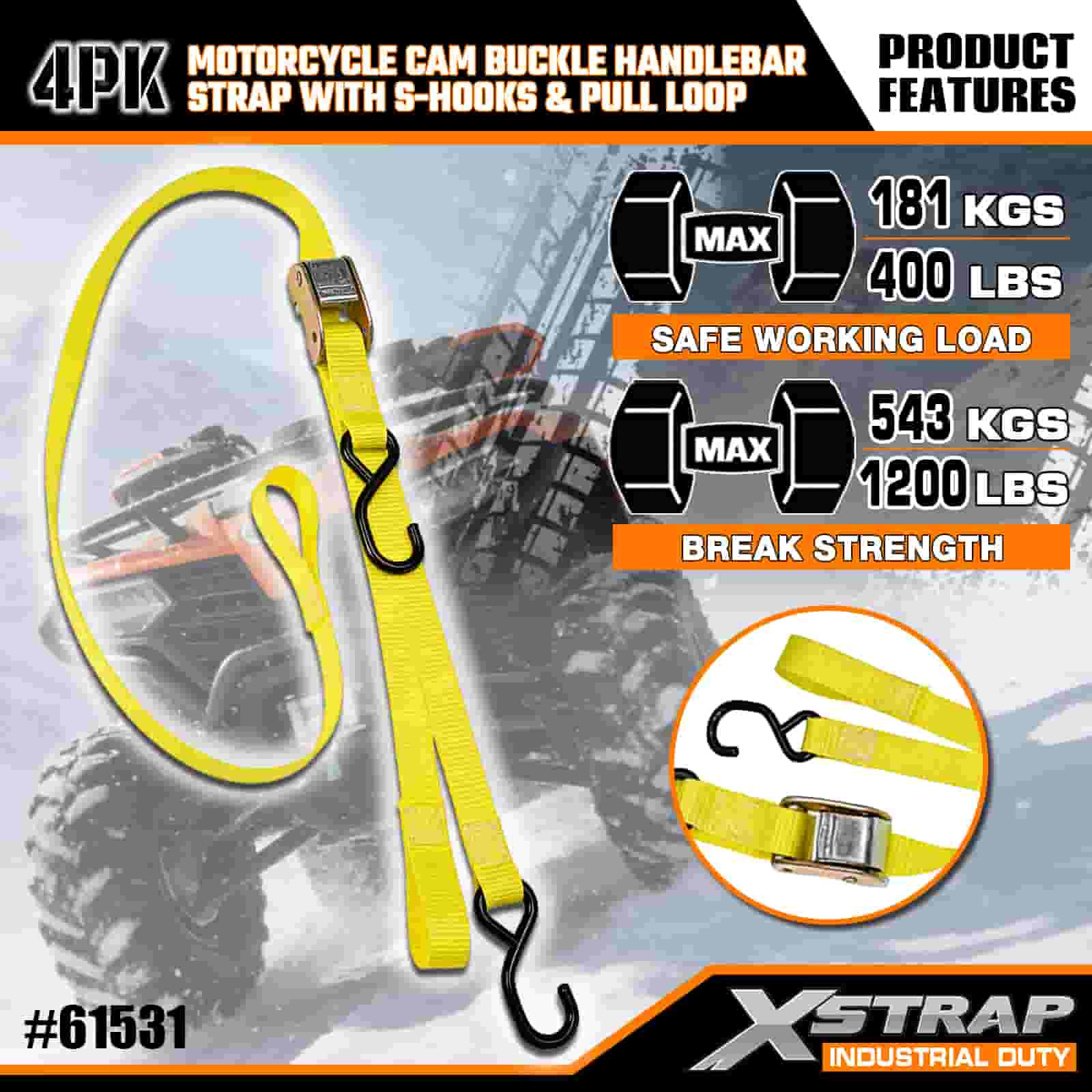 Strap Láimhe Mótair Cam Gluaisrothar Xstrap 4PK le S Hooks & Tarraingt Lúb, 1” x 6’ poileistir Ceangail Síos Strap Tarraingt Cam Buckle Strap, 400lb Toilleadh Lasta Lashing Strapaí Daingnithe le S Hooks don Ghairmí Tromchúiseach chun Leantóir Lasta a Dhaingniú, Leantóir Leaba Réidh, Bád Sciála.