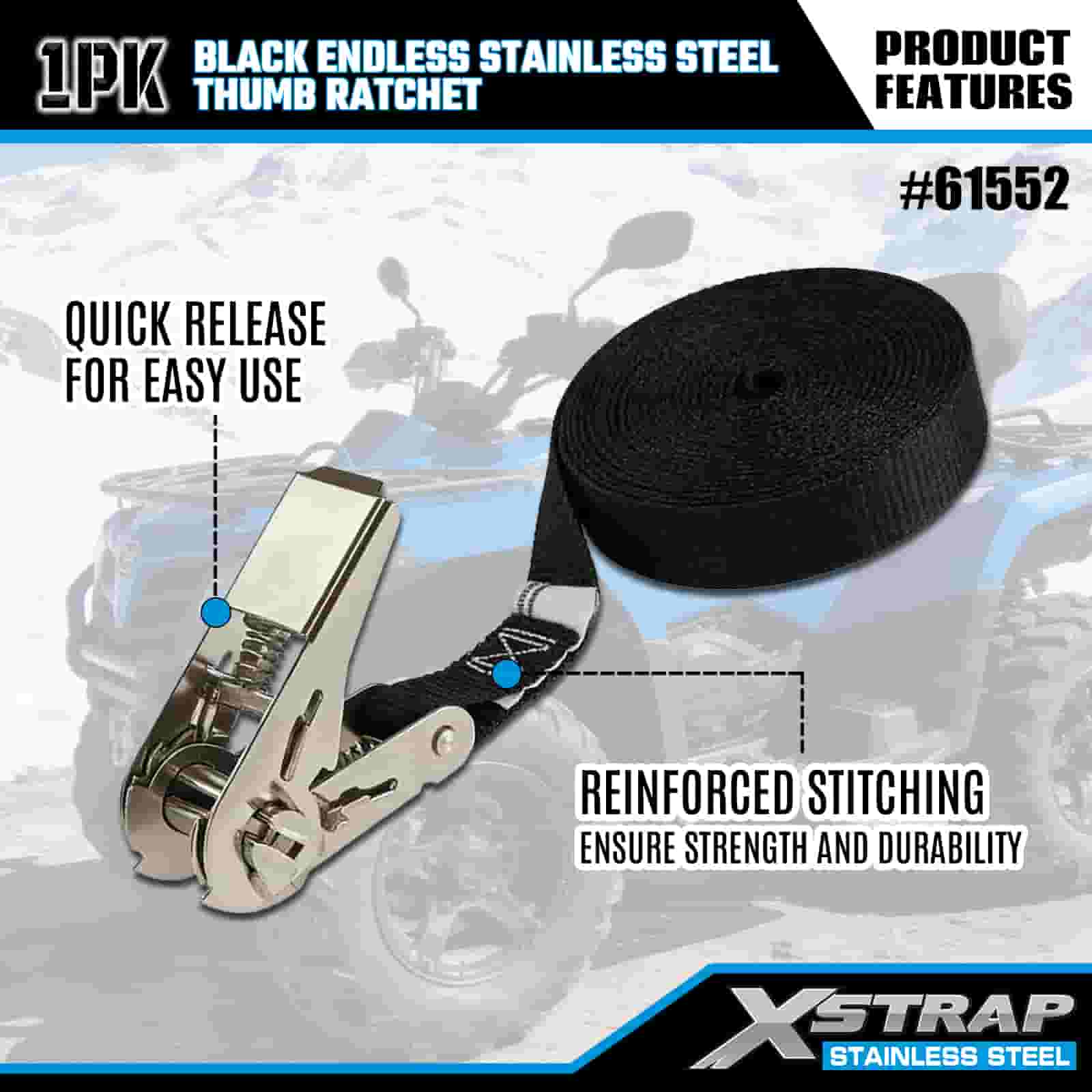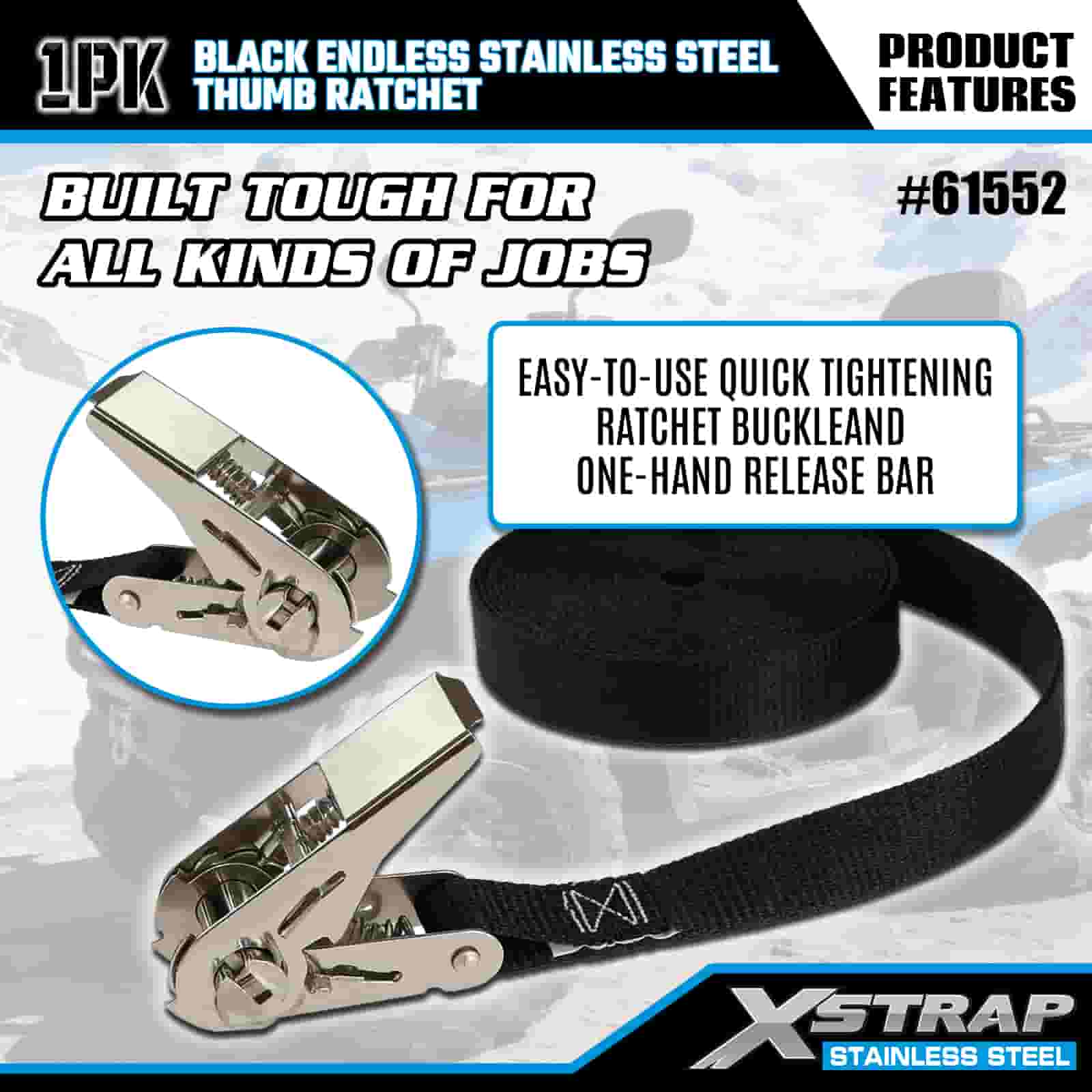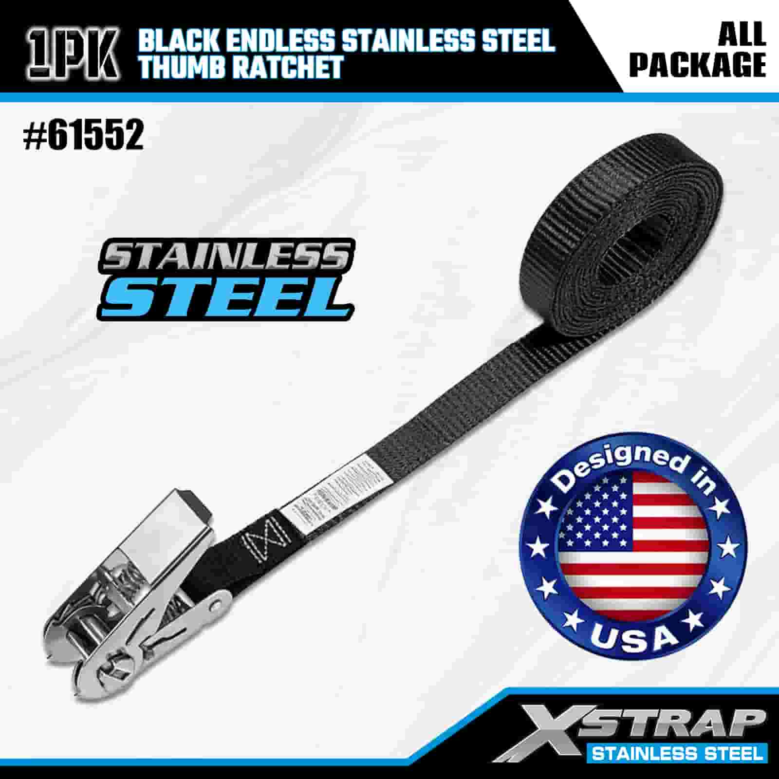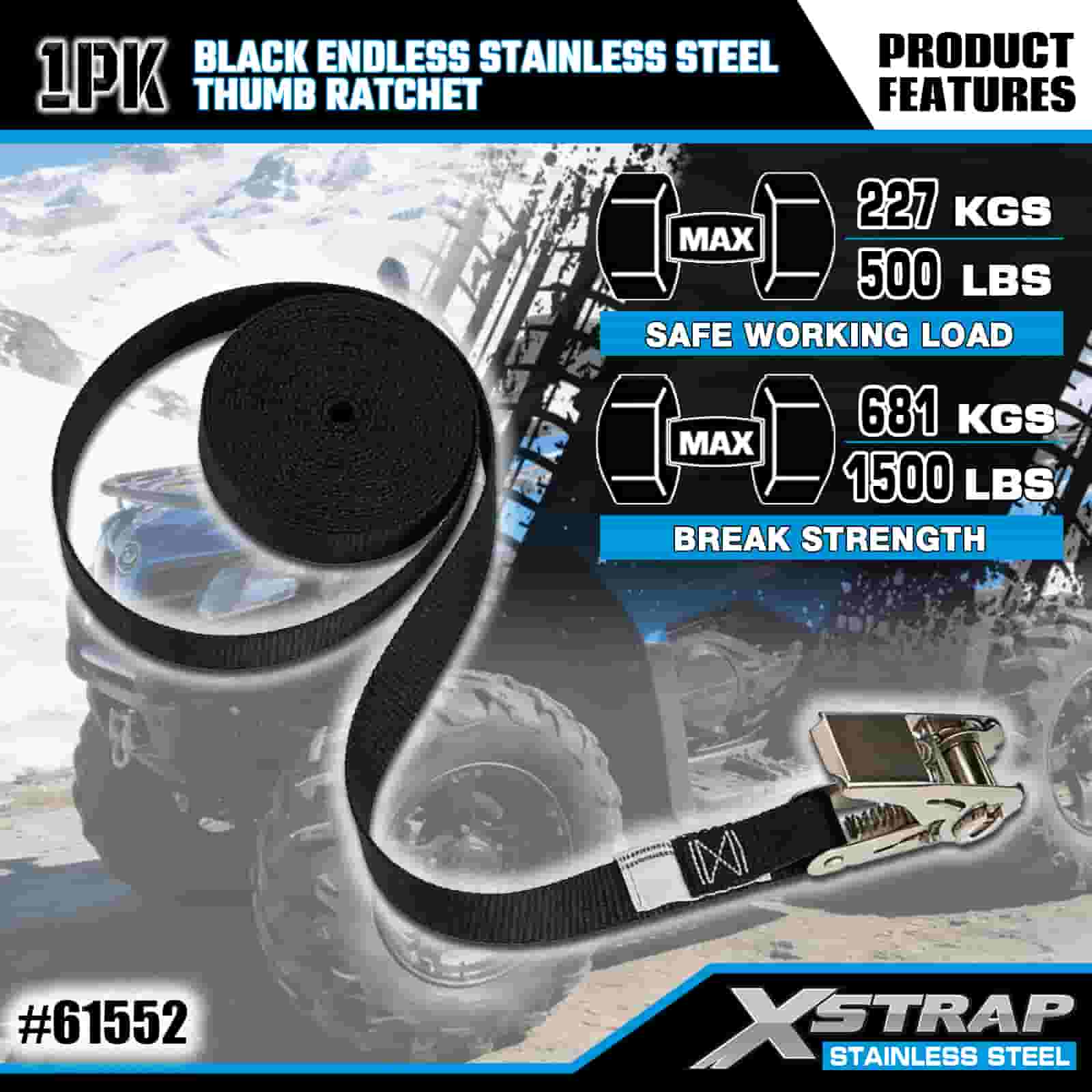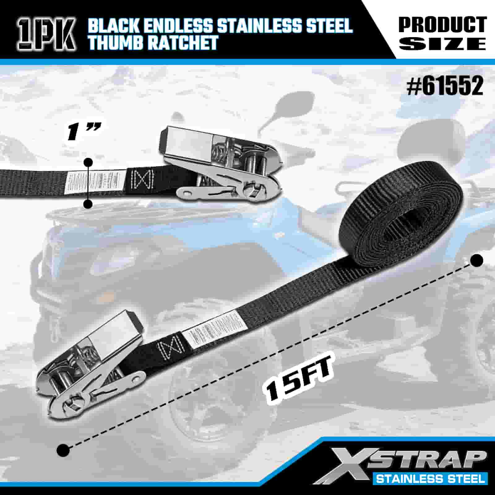 Ráipéar Ordóg Cruach Dhosmálta Neamhdhosmálta Xstrap Dubh, 1” x 15’ poileistir Ceangail Strap Ratchet Strap, 500 lbs Toilleadh Lasta Lashing Strapaí Daingnithe do Leantóir, Leantóir Leaba Cothrom Bád sciála, Carr Beag, Trealamh Trom.