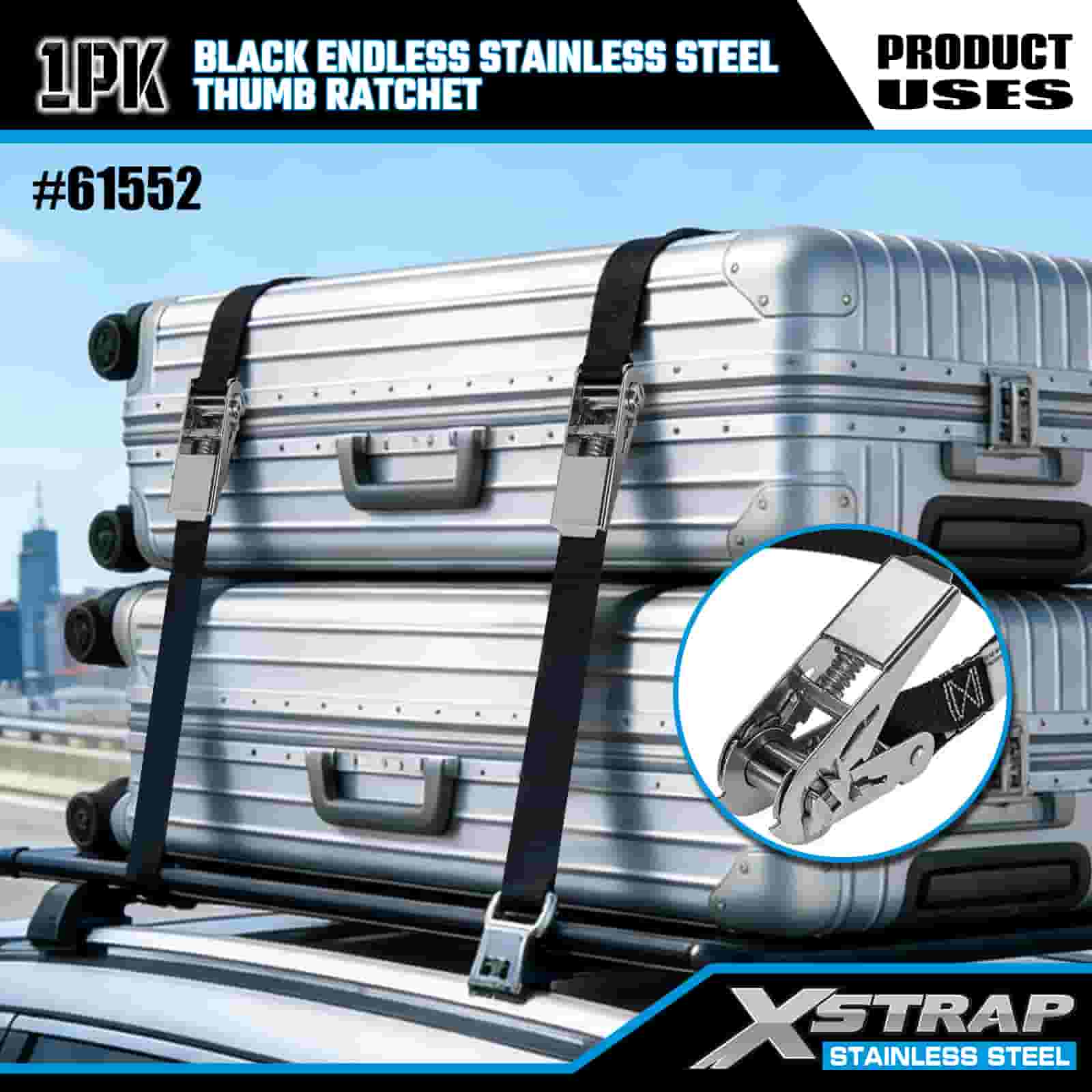 - Fad 15FT don Chlúdach Iomlán: Soláthraíonn an uigí 15 troigh gan teorainn fad cuimsithí chun earraí móra nó iolracha a dhaingniú, ó bhagáiste raca dín go lasta leantóra. Oireann a phróifíl caol spásanna daingean, agus cuireann na crua-earraí cruach dhosmálta bailchríoch caol, marthanach. leis