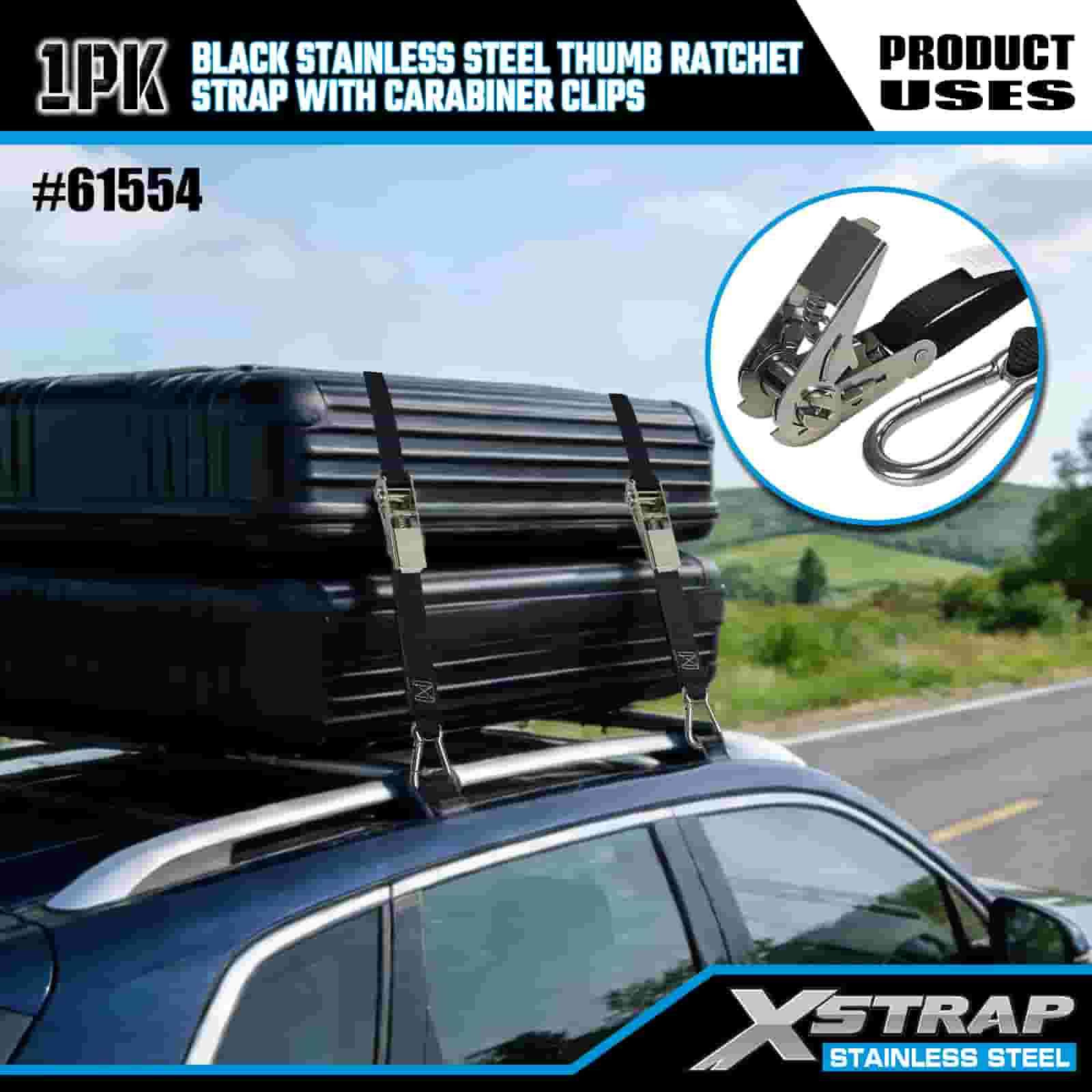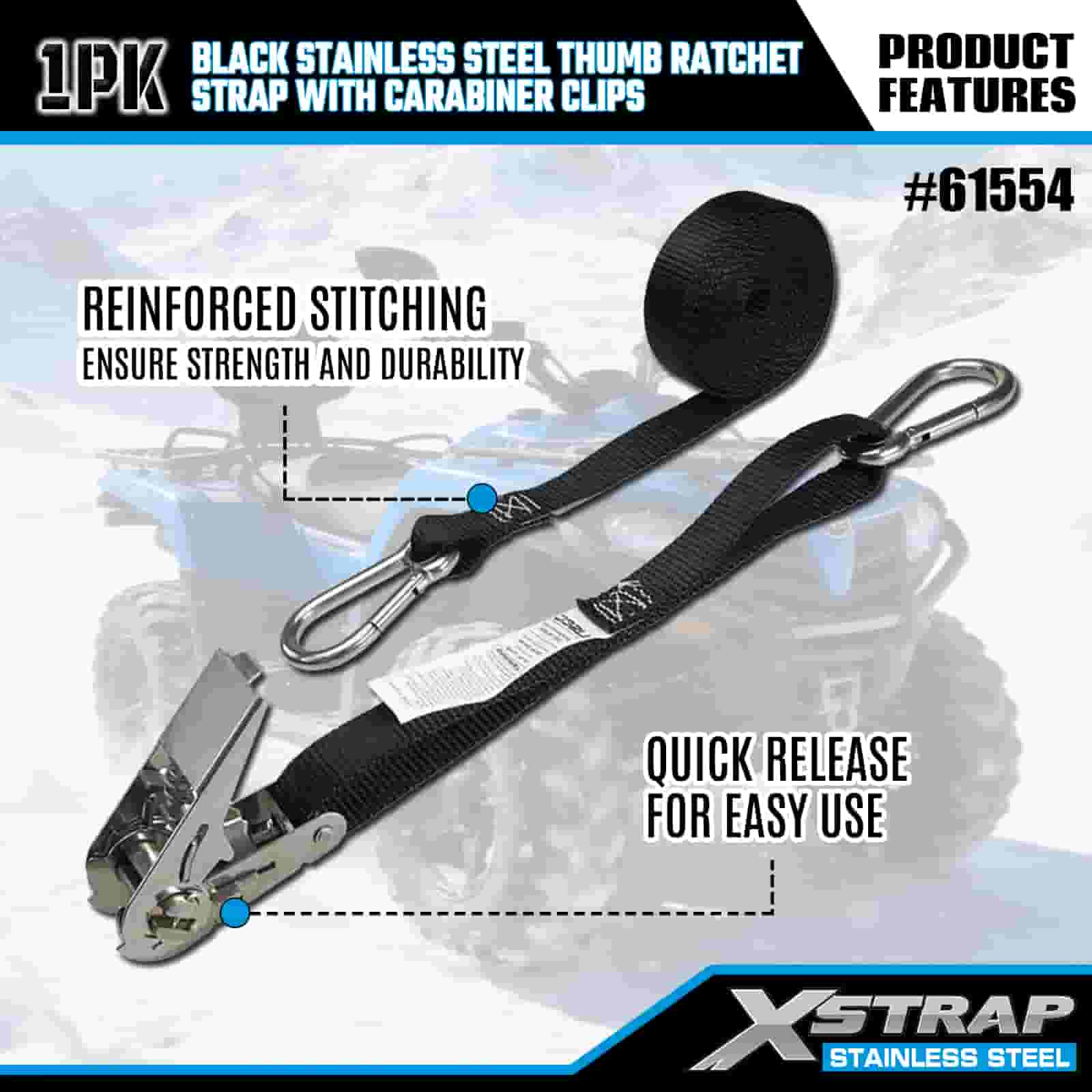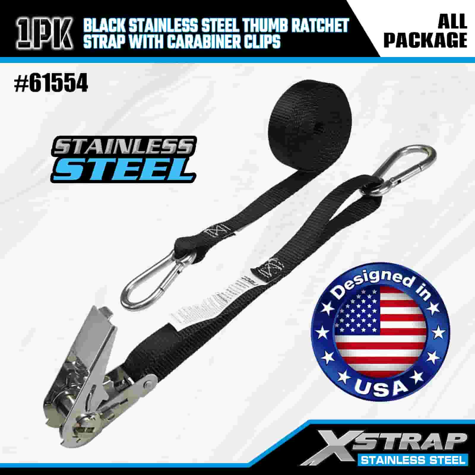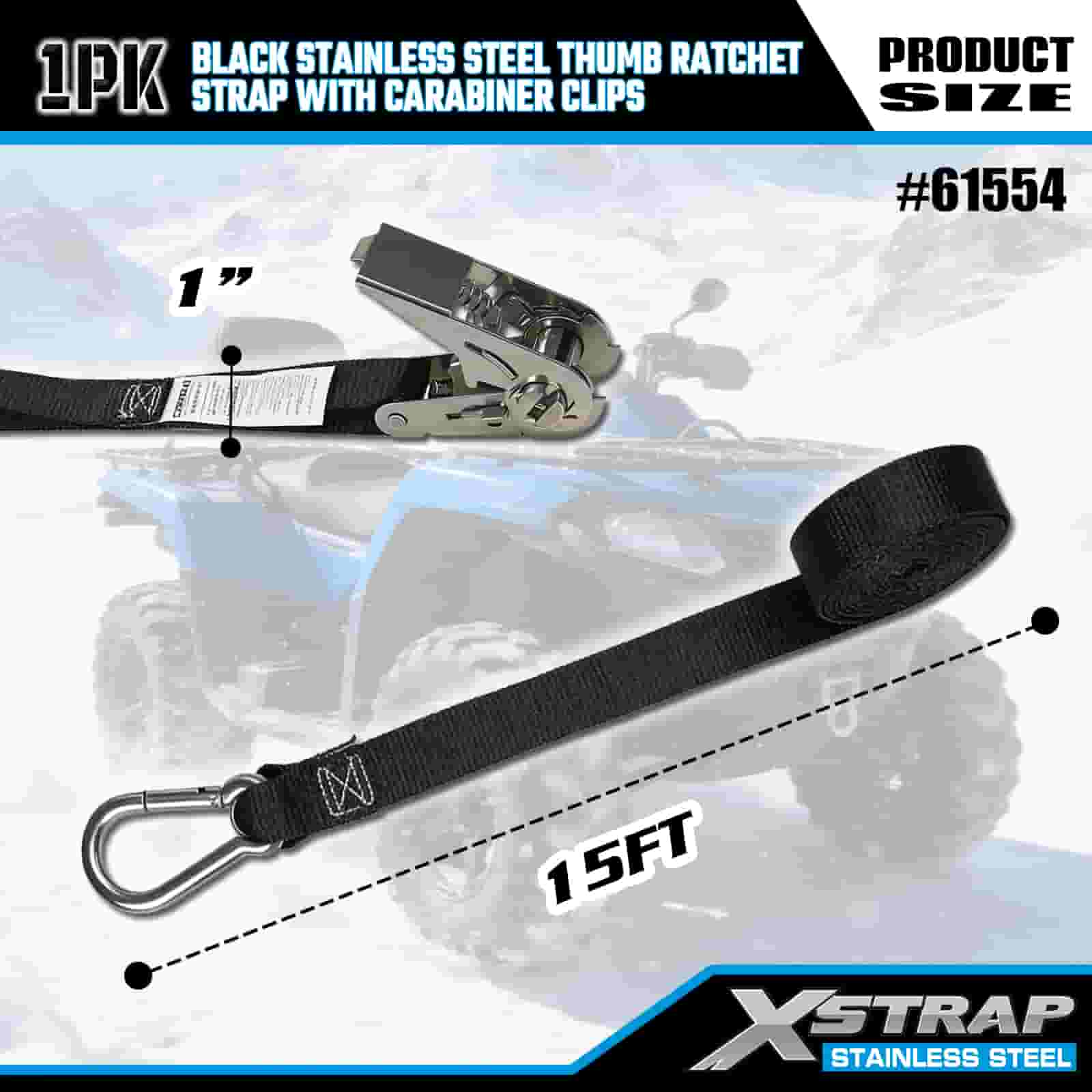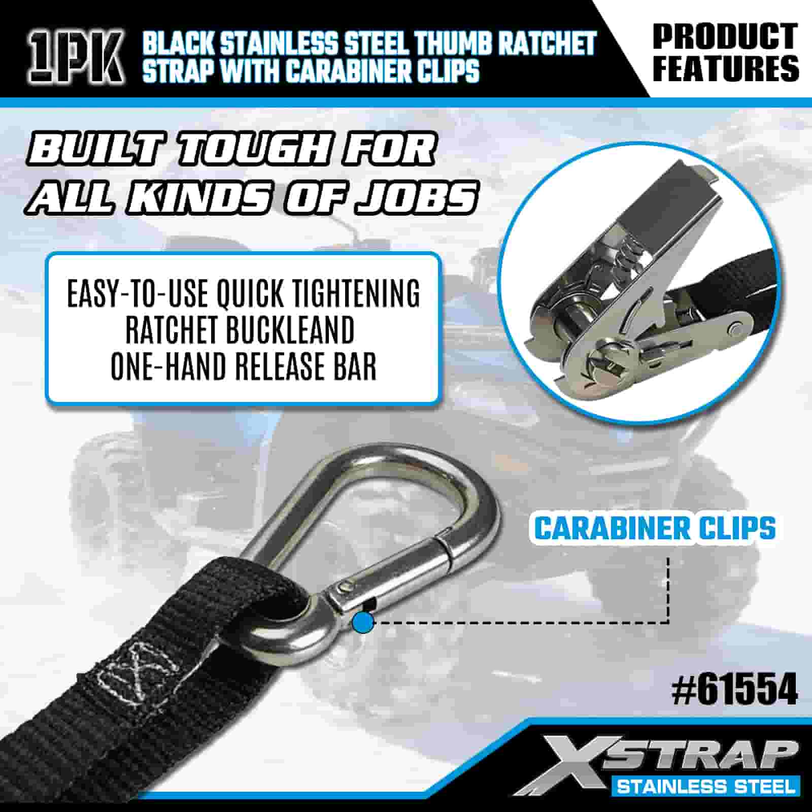 Rataí Ordóg Cruach Dhosmálta Xstrap Dubh le Gearrthóga Carabiner, Strap Raitse Ceangail Poileistir Síos 1” x 10’, Cumas Lasta 166 lbs Strapaí Daingnithe Lashing le Gearrthóga Carabiner le haghaidh Leantóir, Bád sciála Leantóir Leaba Cothrom, Carr Beag, Trealamh Trom.