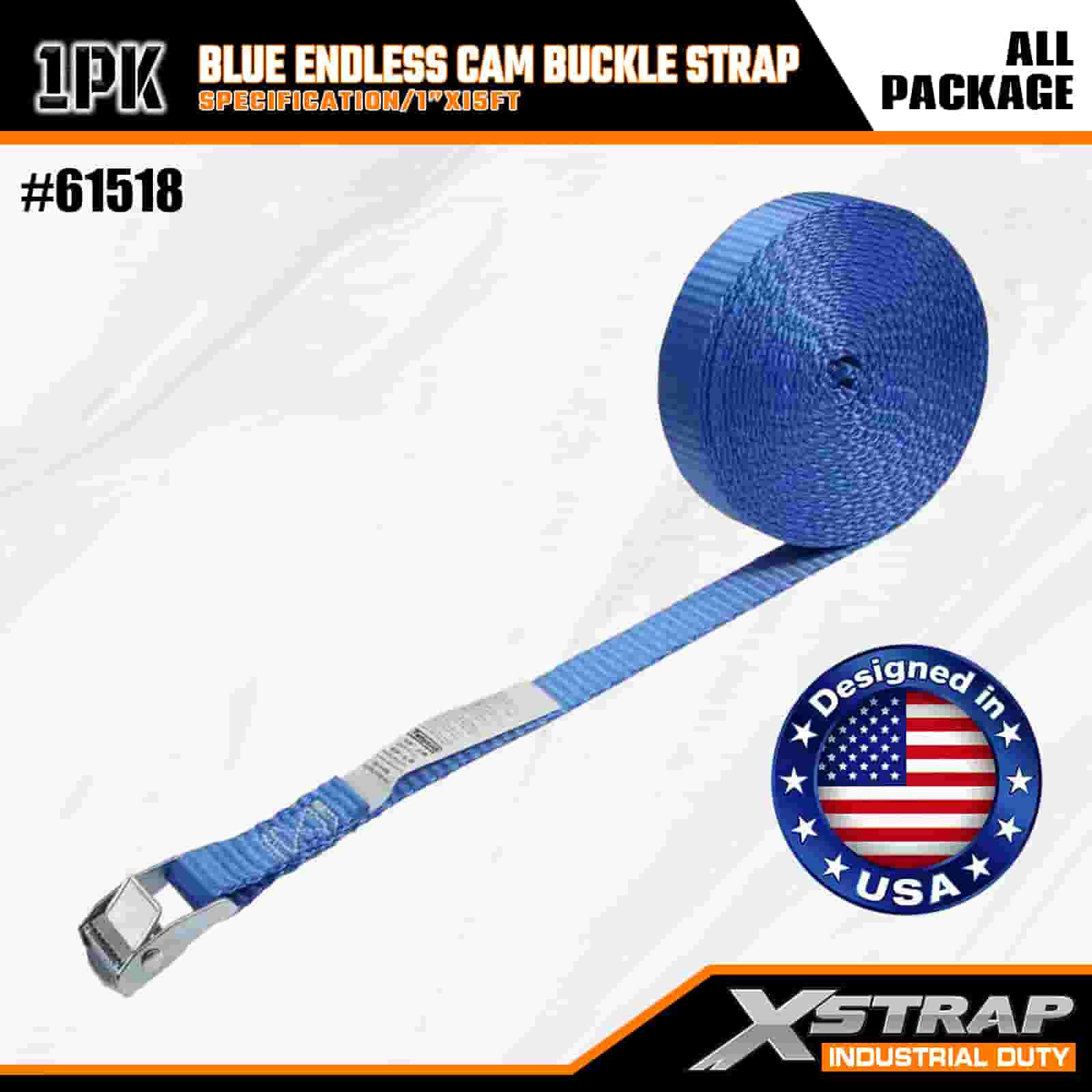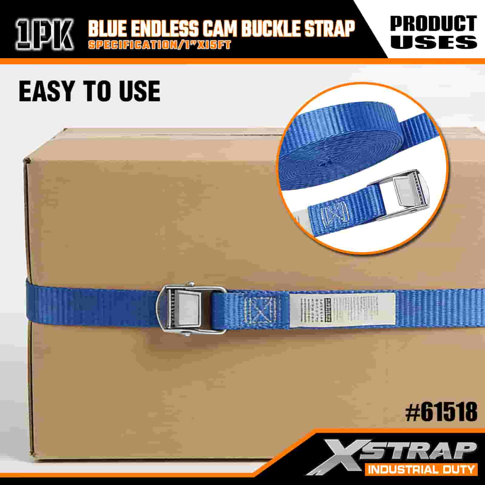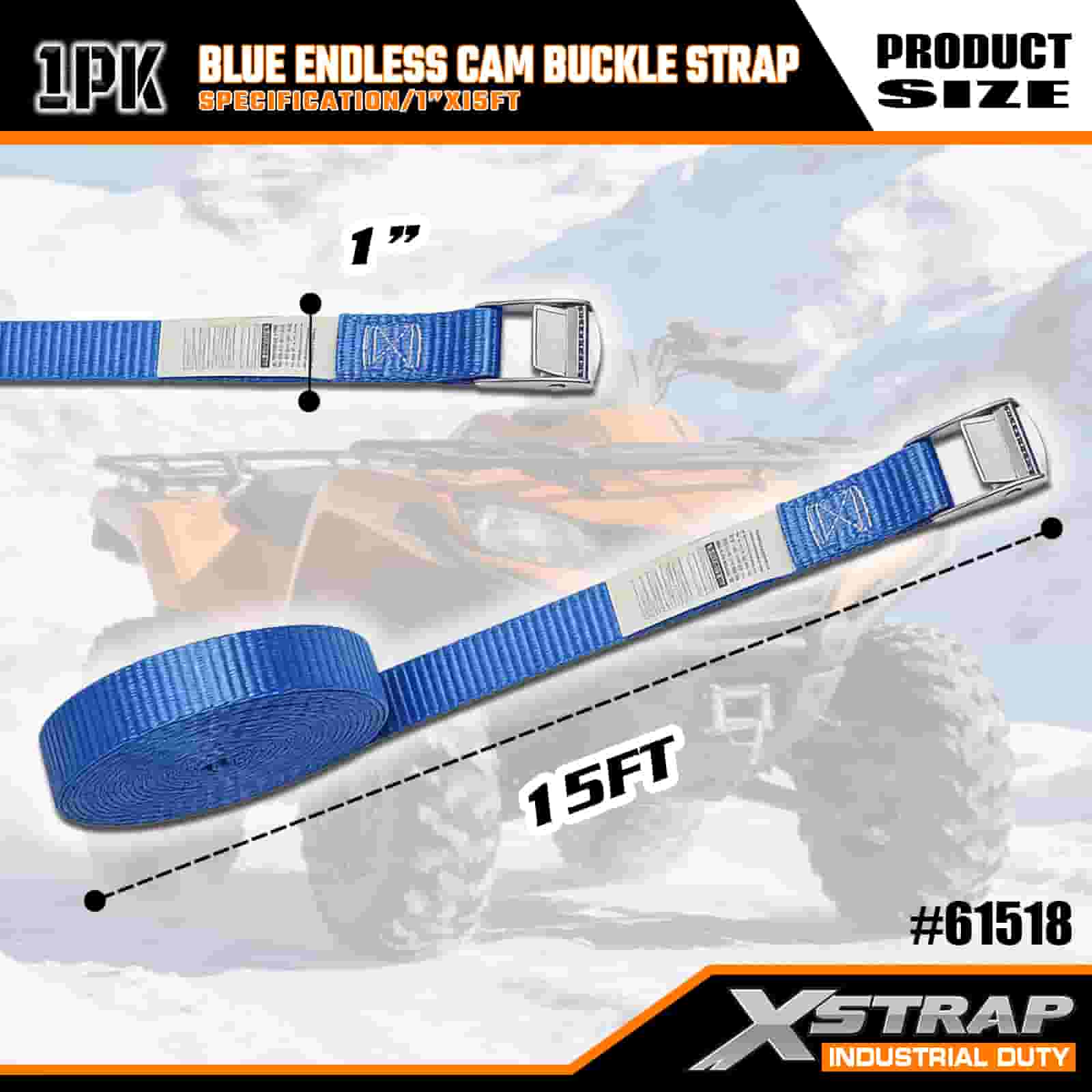Strap búcla Cam Gan deireadh Xstrap, 1” x 15’ poileistir Ceangail Síos Strap Strap Ratchet Tarraingt, Toilleadh 166 lbs Lasta Lashing Strapaí Daingnithe don Ghairmí Tromchúiseach Leantóir Lasta a Dhaingniú, Leantóir Leaba Leaba, Bád Sciála, Carr Beag.