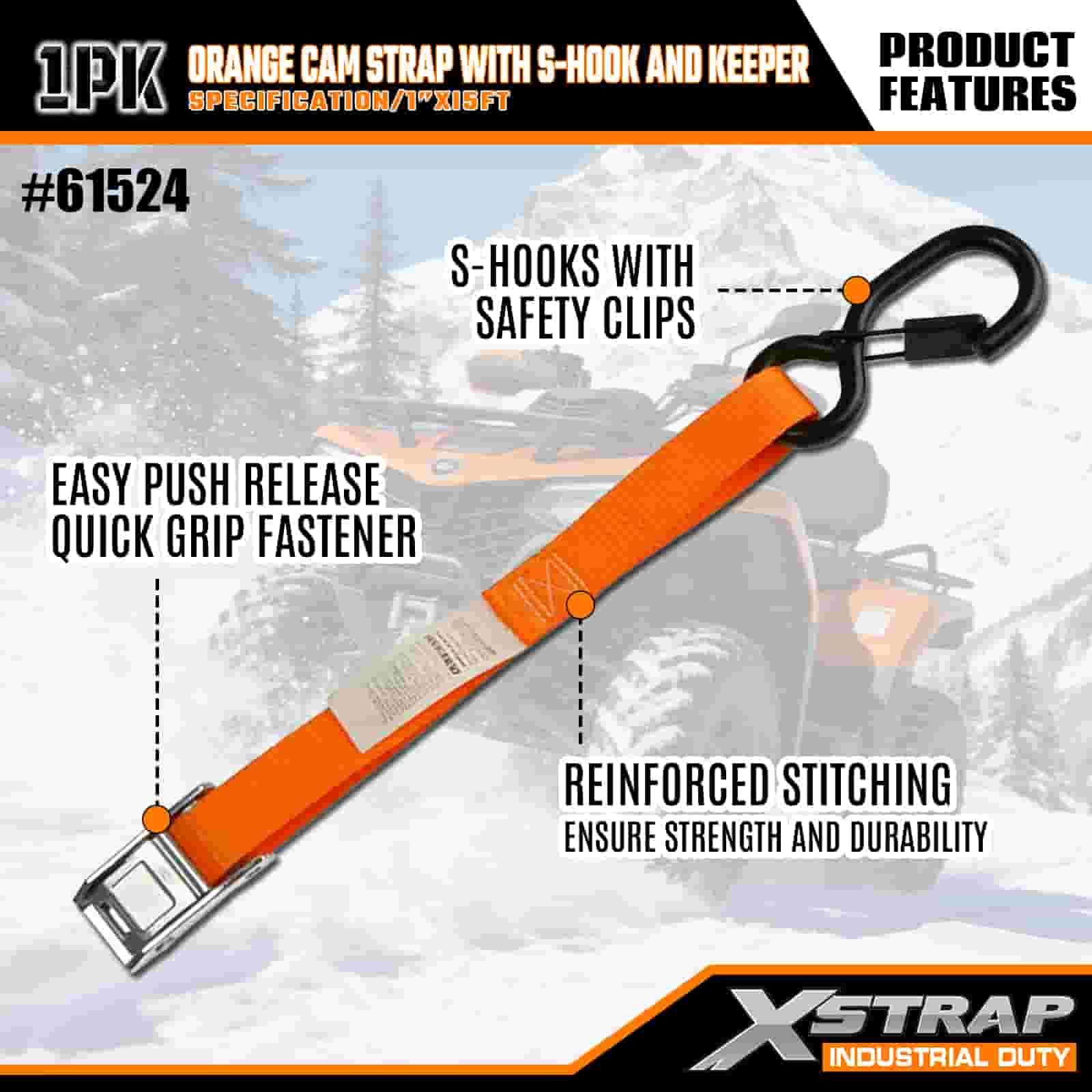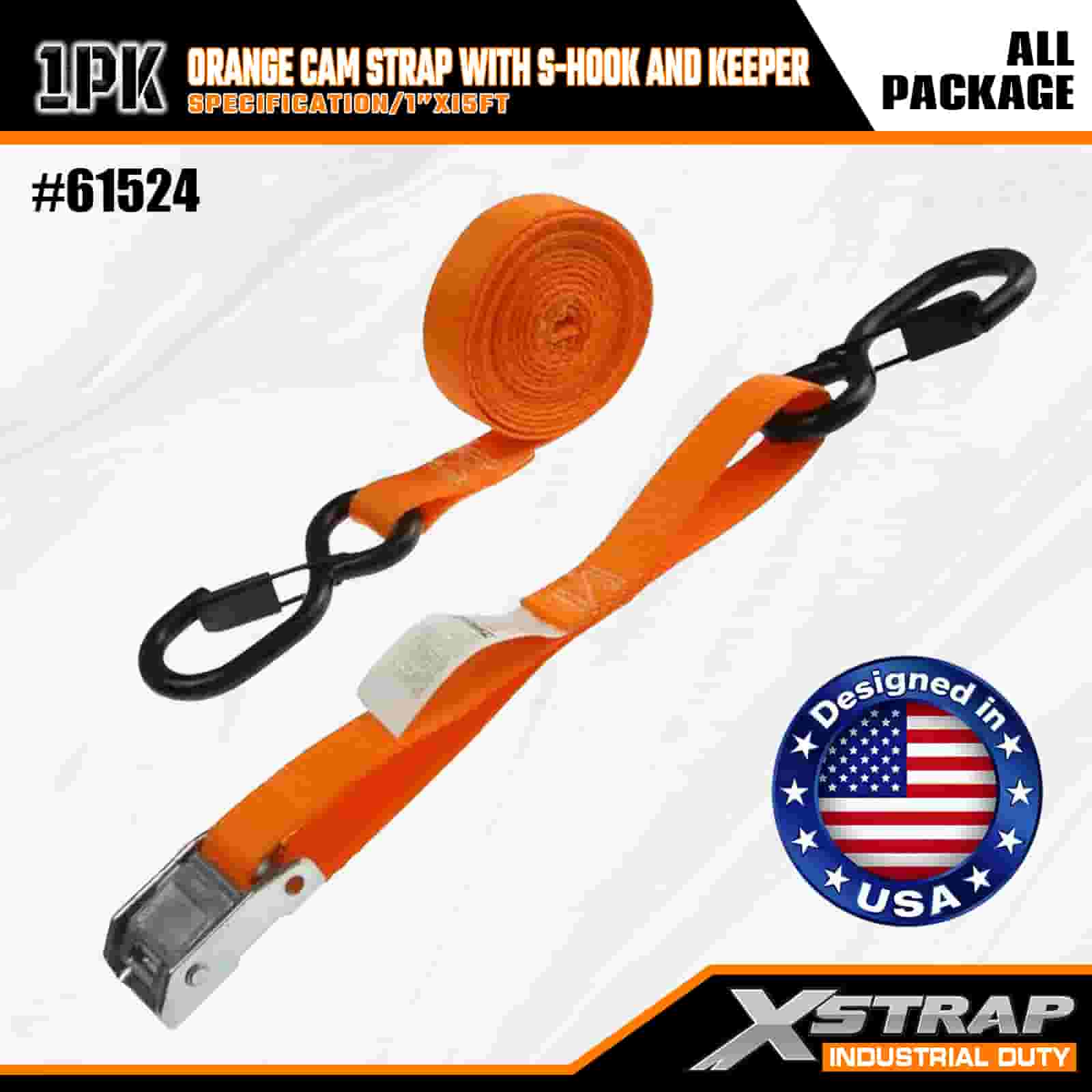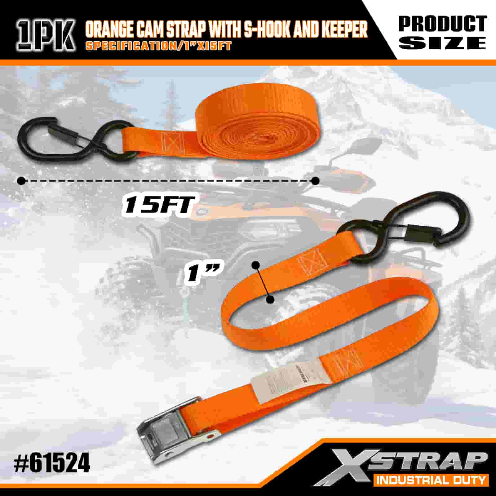 Strap Cam Qrange 1” x 15’ le S-Hook agus Coimeádaí