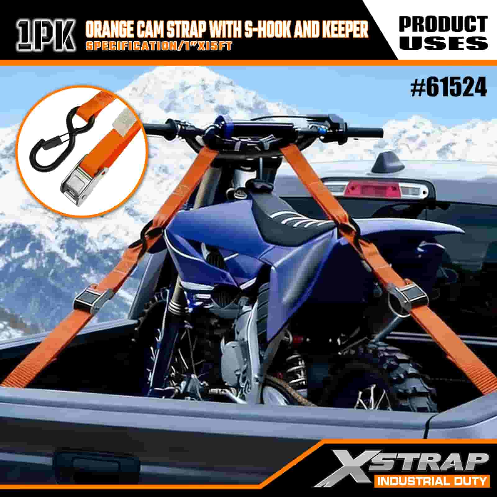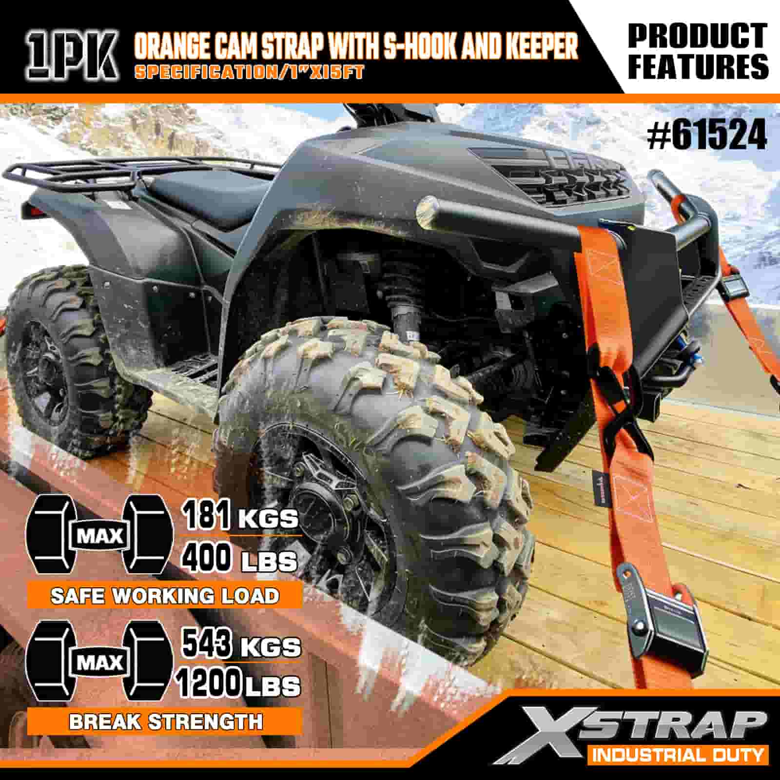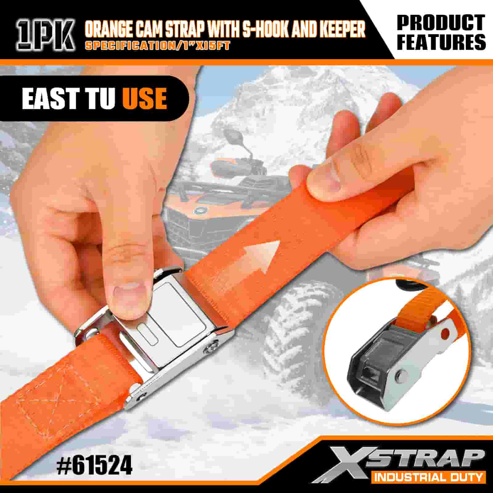 Strap Cam Xstrap Qrange le S-Hook agus Coimeádaí, Strap Ratchet Tarraingthe Poileistir 1” x 15’ Strap Ratchet Tarraingthe, Toilleadh Lasta Lashing 400’s Strapaí Daingnithe le S Duáin Sábháilteachta don Ghairmí Tromchúiseach chun Leantóir Lasta a Dhaingniú, Leantóir Leaba Leaba, Bád Sciála, Carr Beag.