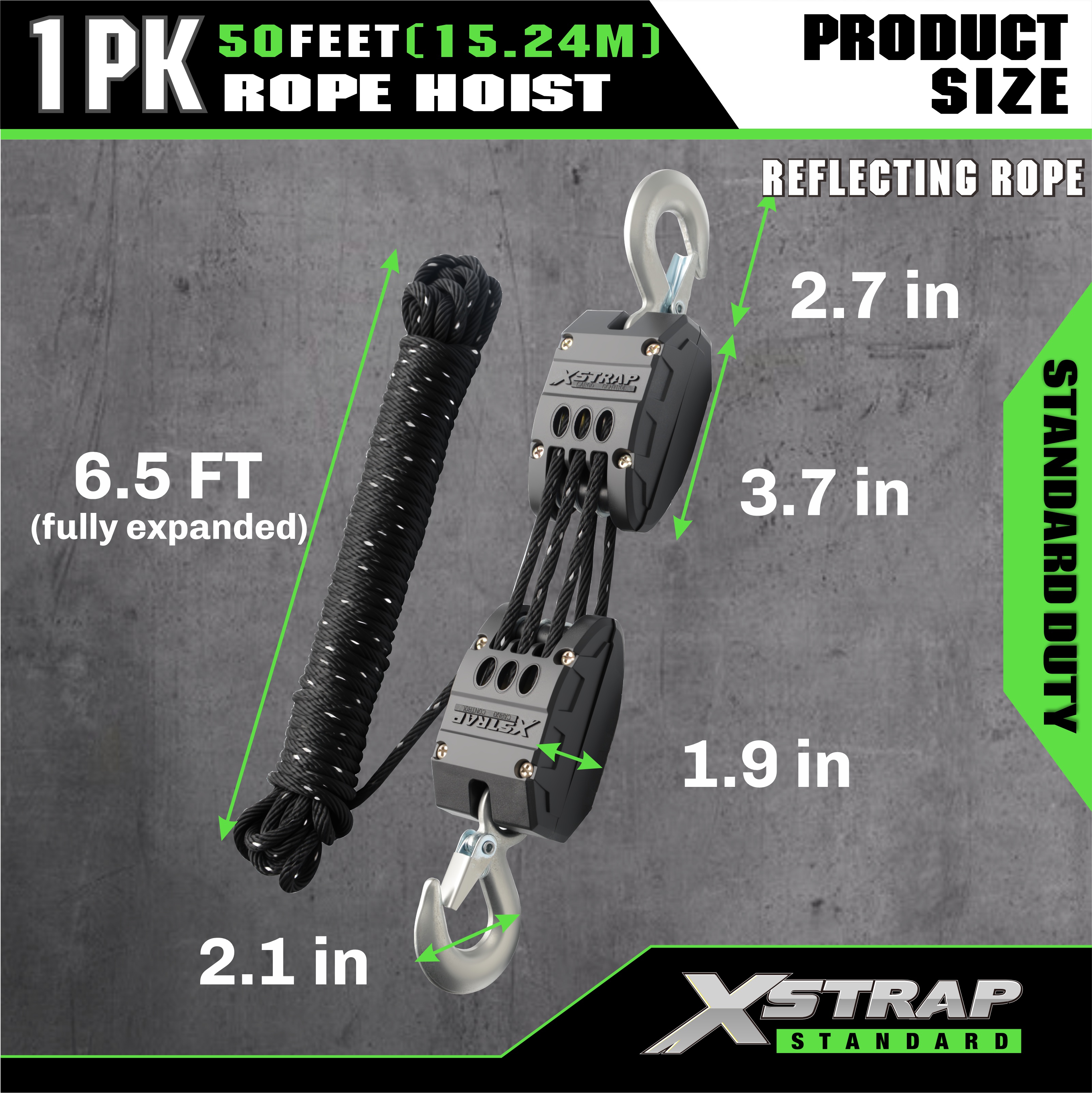 Córas Pulley Ardaithe Rope Dubh XSTRAP AHLT0003-léiritheach 1000LB