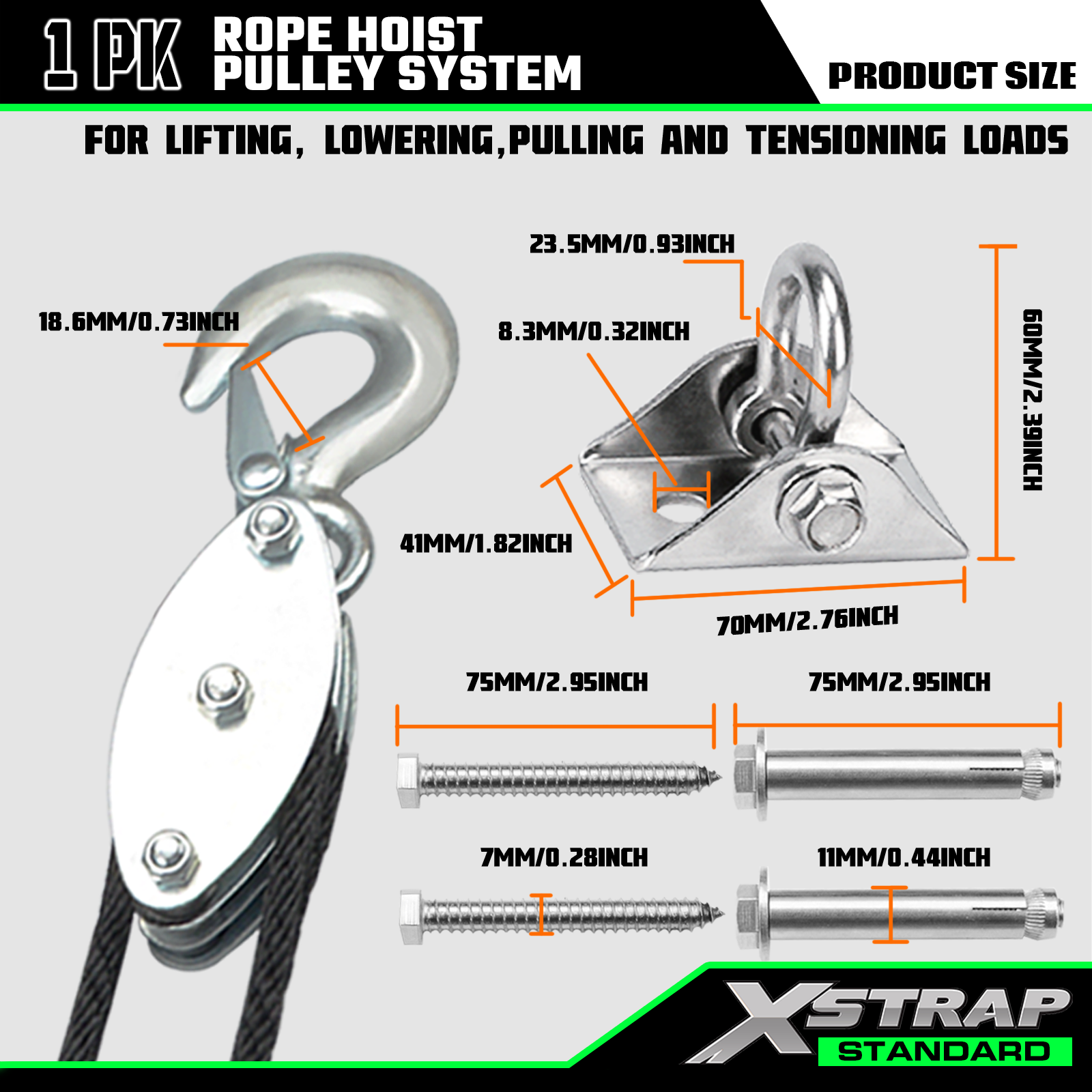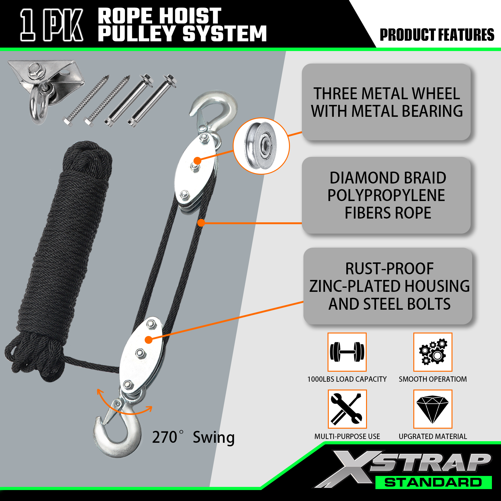 Xstrap AHLT0004 50 Ft Rope Hoist Pulley System 1000LB