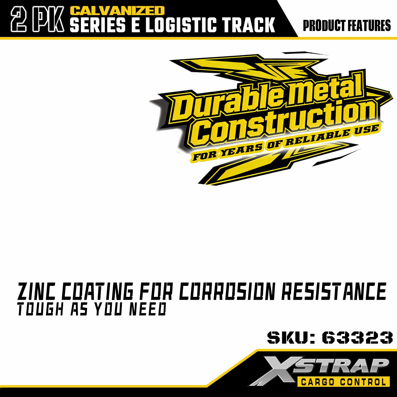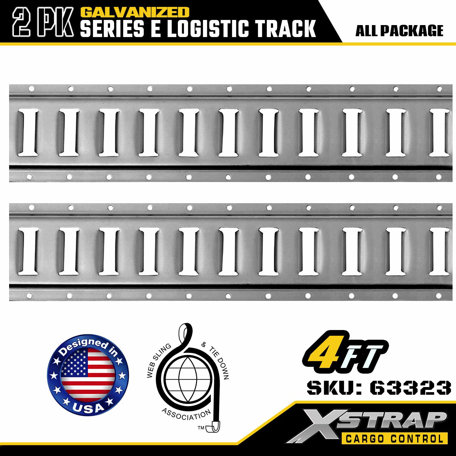 Iarnróid Ceangail-Síos E-Arian Leictreaphlátáilte Xstrap 63322 4troigh - Cruach 12 Tomhsaire le bailchríoch Galbhánaithe, Cumas Luchtaithe 6000LBS, 2-Phacáiste le haghaidh Lasta a Dhaingniú