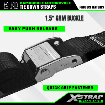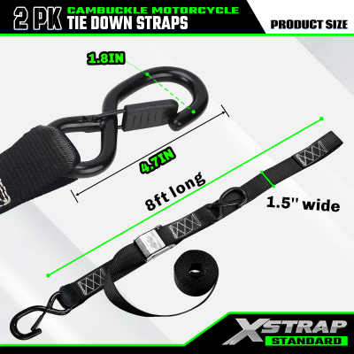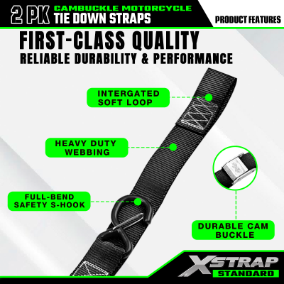 - Dearadh caighdeánach dualgas trom: Tógtar strapaí ceangail gluaisrothar Xstrap le uigí ard-neart agus tá neart sos de 2200 punt acu, rud a fhágann gurb iad an rogha is fearr chun gluaisrothair, ATVanna, UTVanna agus rothair shalachar a dhaingniú. Nuair a úsáideann tú ár straps búcla cam le haghaidh turas tapaidh, Xstrap comhionannas vótaí síos straps chinntiú marthanacht agus slándáil unmatched.
