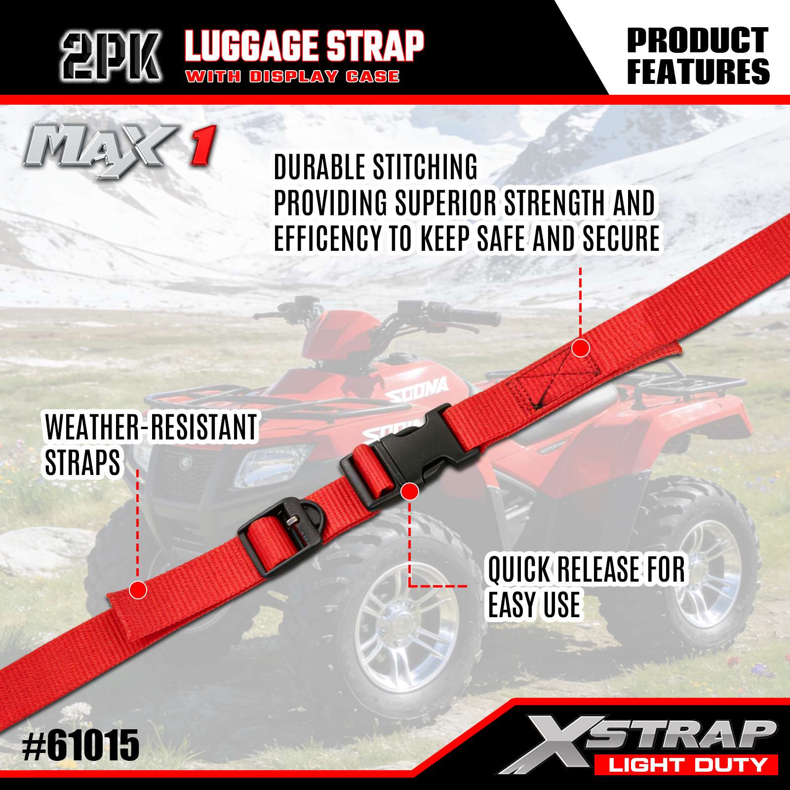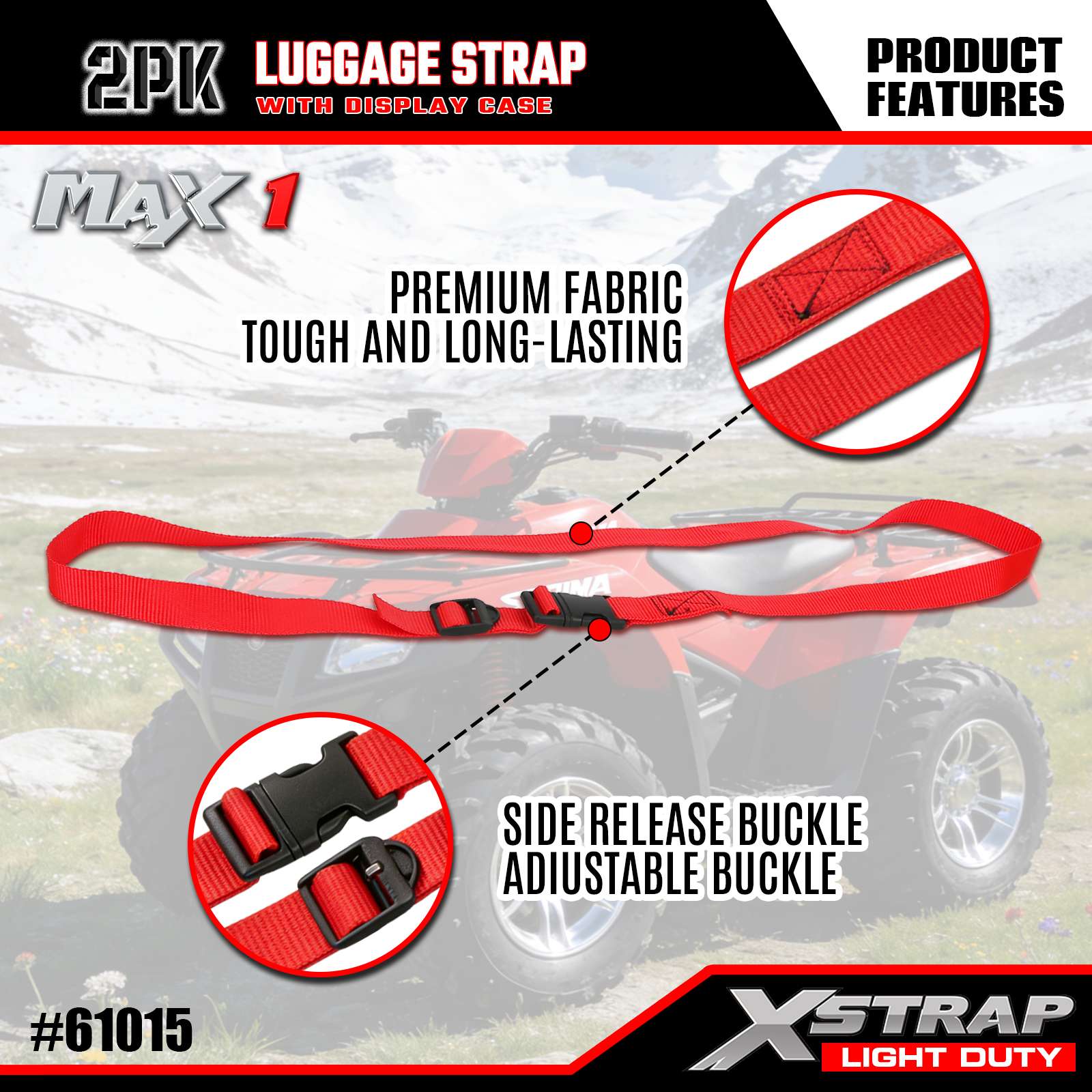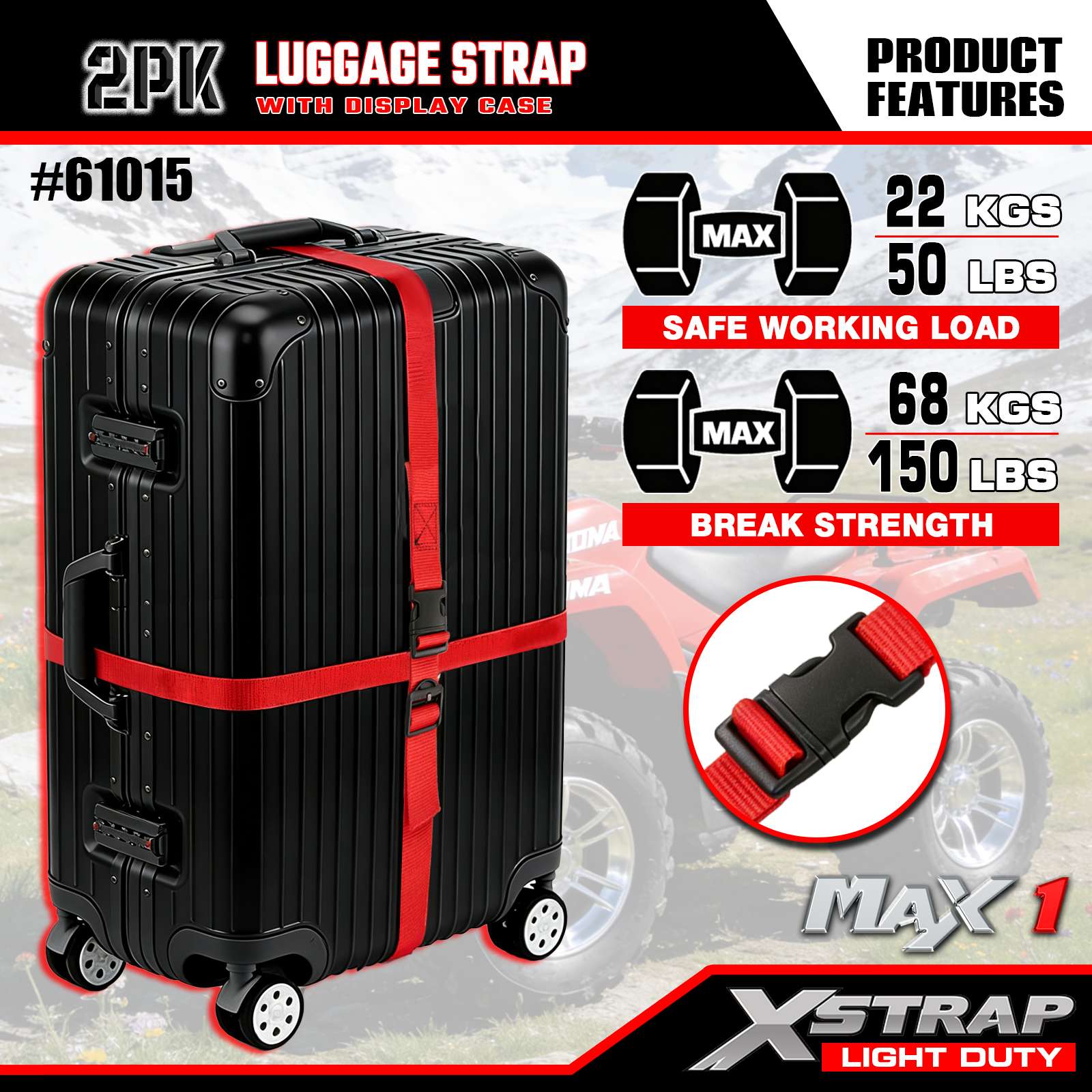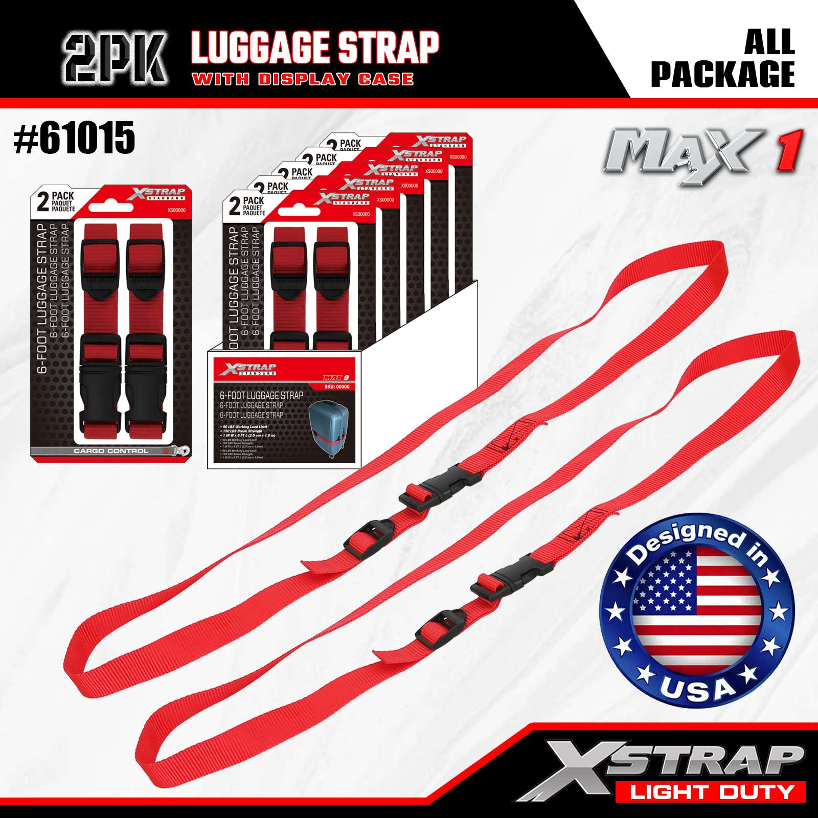 Xstrap 2 Pacáiste strapaí bagáiste inchoigeartaithe, 1” x 6’ - 50 Lbs Caipín Luchtaithe- Neart Briseadh 150 Lbs- Strapaí lasta le haghaidh Cásanna, Éasca le hAithint Ceanglóir Crios Taistil a Choinníonn Mála Le Chéile, Síneann Saol Mála, Nascann Strap Dhá Mhála, Dearg