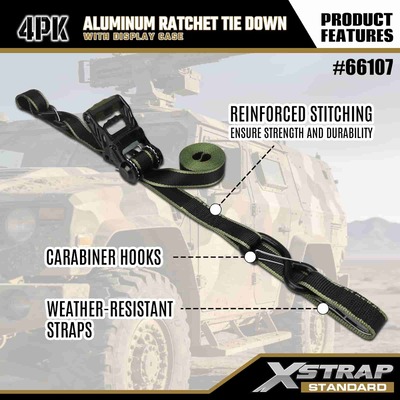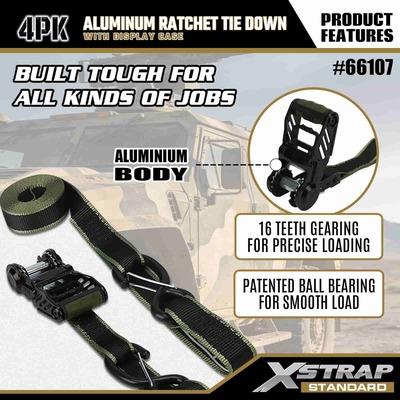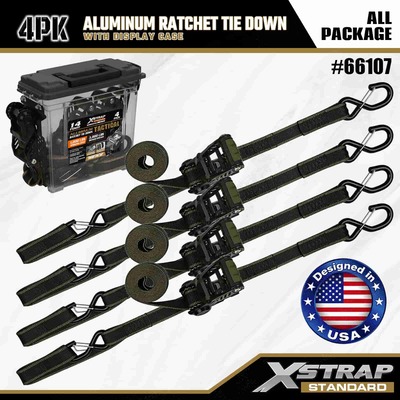 Xstrap 4 Pacáiste Ratchet Alúmanam Ceangail Síos, 1-1/4" x 14' poileistir Ceangail Síos Strap le lúb bog Tarraingt Strap Ratchet, Toilleadh 1000 lbs Lasta Lashing Strapaí Daingnithe le Sábháilteacht S Duáin le haghaidh Rialú lasta Truck Pickup, SUV, Carranna Barr Racks Gluaisrothar.