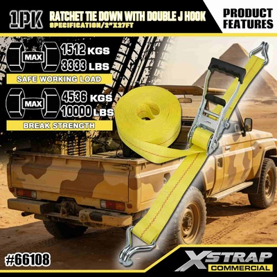 2” x 27’ Ratchet Ceangail Síos le Dúbailte J Duáin