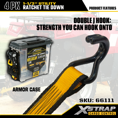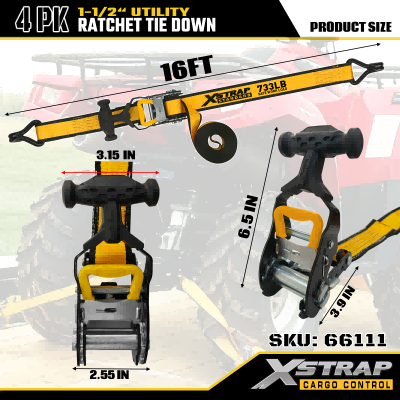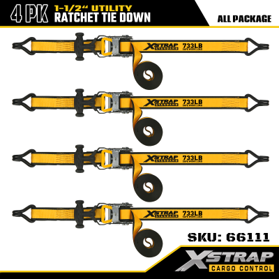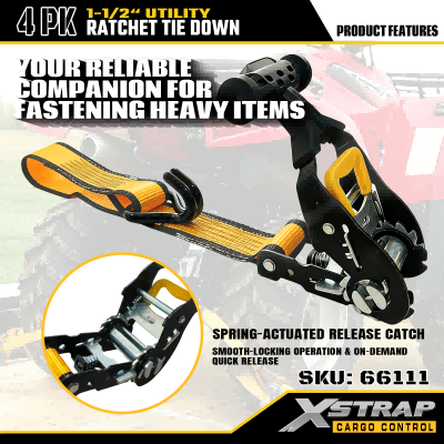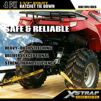 Xstrap 4 Paca T Láimhseáil Ratchet Ceangail Síos, 1-1/2” x 16’ Poileistir Ceangal Sios Stapa Tarraingt Stapa Ratchet, Toilleadh 1100 lbs Straipeanna Daingnithe Lasda Le Dúbailte J do Thruck Pioctha rialaithe lasta, SUV, Racaí Gluaisrothar Barr.