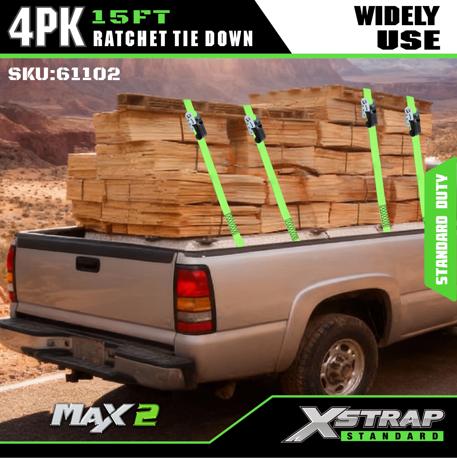 1" x 15' 4PK Ratchet Ceangail Síos