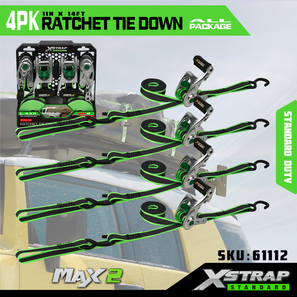 1” x 14’ 4PK Ratchet Ceangail Síos
