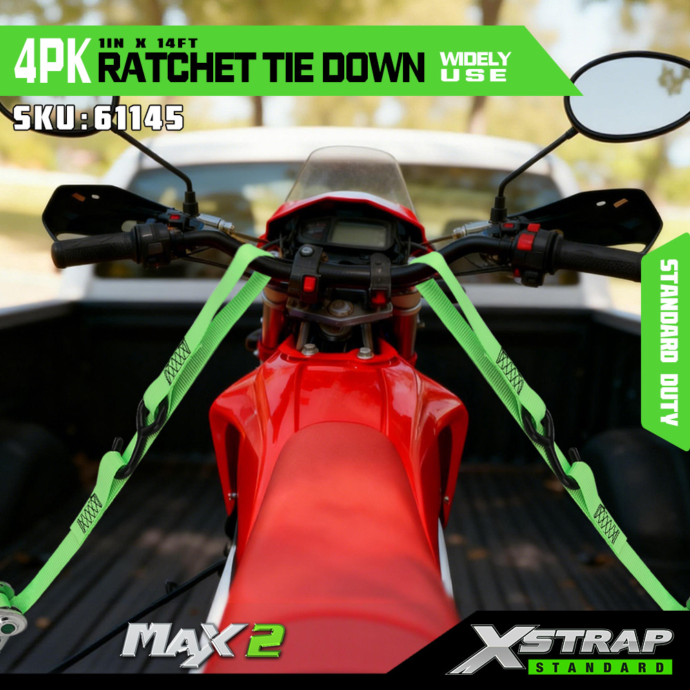 1” x 14’ 2PK Ratchet Ceangail Anuas Strapaí le Lúb Bog