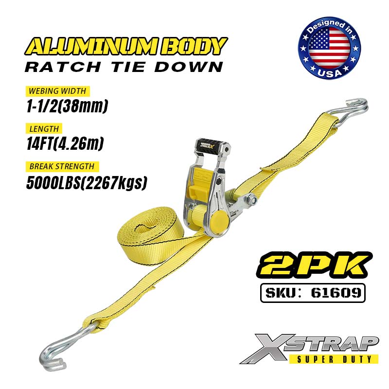 1-1/2" x 14' 2PK Ratcet Ceangail Síos le Hooks Double J