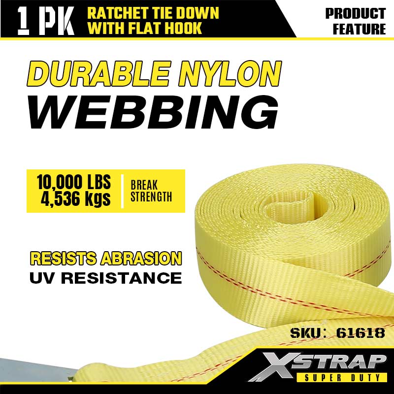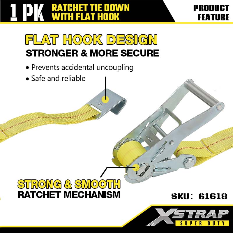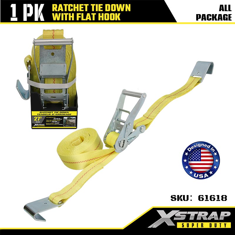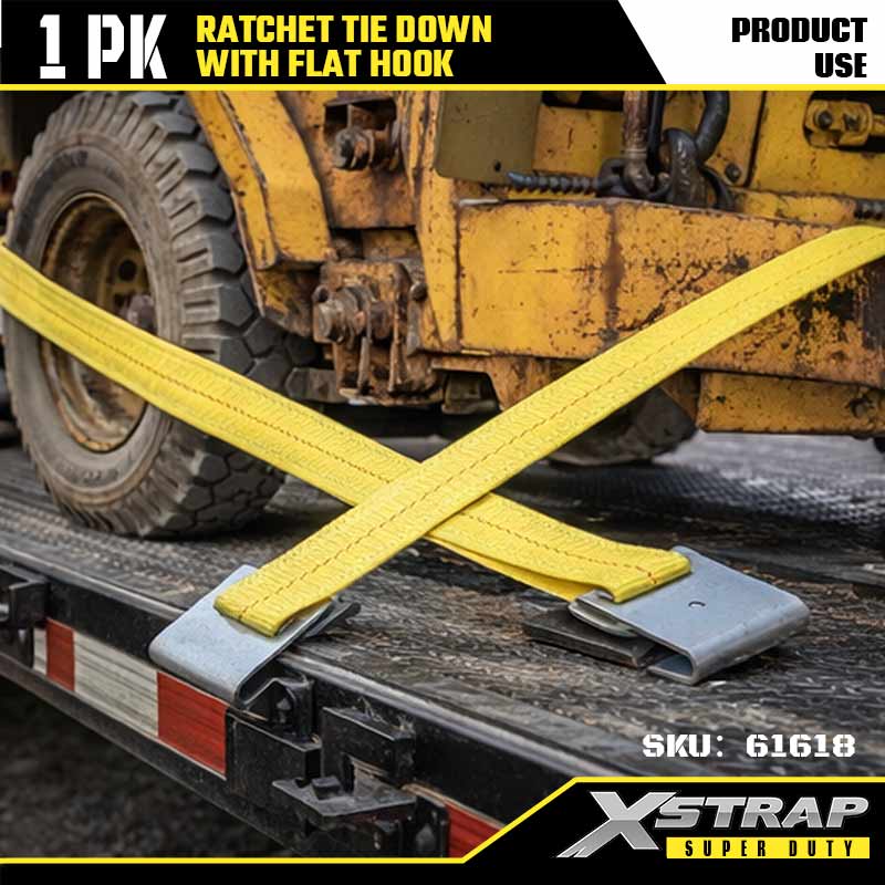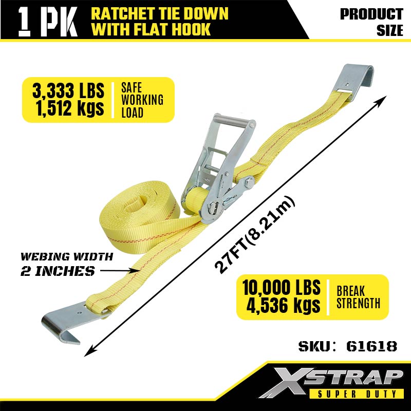 Xstrap Ratcet Ceangailte le Duáin Maol, 2” x 27’ boscatir Ceangailte Síos Strap Ratchet Strap, Toilleadh 3333 lbs Lasta Lashing Strapaí Daingnithe le Hooks Maol do Leantóir Dualgas Trom, Leantóir Leaba Mhaoineacha Bád sciála, Carr Beag, Trealamh Trom.
